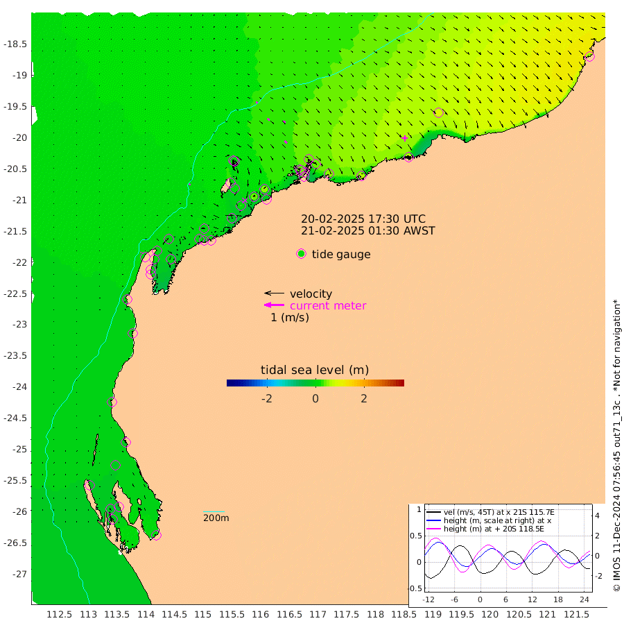 5cm/s 50T +12cm/s rms + 5cm/s -173T. NWSBAR 206m 3cm/s 41T +22cm/s rms + 10cm/s -148T. TAN100 109m 9cm/s 106T +11cm/s rms + 8cm/s -129T. PIL200 208m 14cm/s 130T +13cm/s rms + 7cm/s -137T. PIL100 105m 15cm/s 133T +12cm/s rms + 2cm/s -92T. PIL050 55m 2cm/s 61T +18cm/s rms + 4cm/s -149T. NRSNIN 61m 13cm/s 117T +6cm/s rms + 3cm/s 112T. NW Shelf M6 65m -18cm Withnell Point -23cm Denham -21cm Shark Bay (Inr Bn) -22cm Shark Bay -20cm Useless Loop 6cm Hamelin Pool -14cm Carnarvon -7cm Cape Cuvier -5cm Coral Bay -6cm Norwegian Bay 5cm Badjirrajirra -1cm Tantabiddi 1cm Point Murat 2cm Exmouth 6cm Learmonth 9cm Y Island 4cm North Muiron Island 9cm Roller 9cm Ashburton North 10cm Onslow (Beadon Creek) 9cm Thevenard Island -22cm Large Island 20cm North Sandy Island 17cm Barrow Island (Wapet Landing) 16cm Barrow Island (Tanker Mooring) 42cm Withnell Bay 10cm Trimouille Island 15cm North West Island -14cm Fortescue Road 45cm Steamboat Island 39cm Sholl Island 40cm Fairway Beacon 45cm Mawby Island 41cm Dampier (King Bay) 37cm Cape Legendre 42cm Hauy Island 53cm Port Walcott (Cape Lambert) 61cm Depuch Island 75cm Port Hedland 91cm Bedout Island 56cm Lagrange Bay