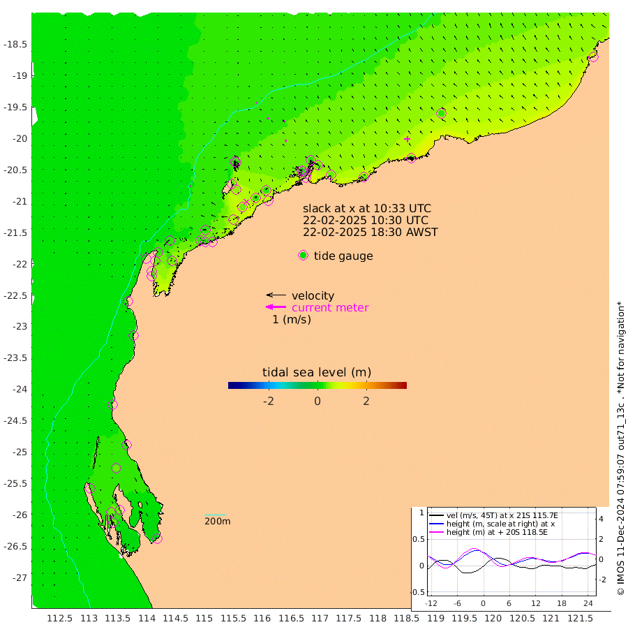 4cm/s -108T +12cm/s rms + 5cm/s -173T. NWSBAR 206m 3cm/s -137T +22cm/s rms + 10cm/s -148T. TAN100 109m 6cm/s -71T +11cm/s rms + 8cm/s -129T. PIL200 208m 10cm/s -44T +13cm/s rms + 7cm/s -137T. PIL100 105m 11cm/s -35T +12cm/s rms + 2cm/s -92T. PIL050 55m 2cm/s -123T +18cm/s rms + 4cm/s -149T. NRSNIN 61m 10cm/s -37T +6cm/s rms + 3cm/s 112T. NW Shelf M6 65m 32cm Withnell Point 43cm Denham 40cm Shark Bay (Inr Bn) 43cm Shark Bay 42cm Useless Loop -1cm Hamelin Pool 32cm Carnarvon 20cm Cape Cuvier 20cm Coral Bay 23cm Norwegian Bay 39cm Badjirrajirra 21cm Tantabiddi 30cm Point Murat 36cm Exmouth 32cm Learmonth 34cm Y Island 26cm North Muiron Island 27cm Roller 26cm Ashburton North 29cm Onslow (Beadon Creek) 28cm Thevenard Island 60cm Large Island 44cm North Sandy Island 34cm Barrow Island (Wapet Landing) 48cm Barrow Island (Tanker Mooring) 31cm Withnell Bay 31cm Trimouille Island 24cm North West Island 70cm Fortescue Road 25cm Steamboat Island 31cm Sholl Island 31cm Fairway Beacon 28cm Mawby Island 31cm Dampier (King Bay) 33cm Cape Legendre 36cm Hauy Island 36cm Port Walcott (Cape Lambert) 37cm Depuch Island 37cm Port Hedland 29cm Bedout Island 101cm Lagrange Bay