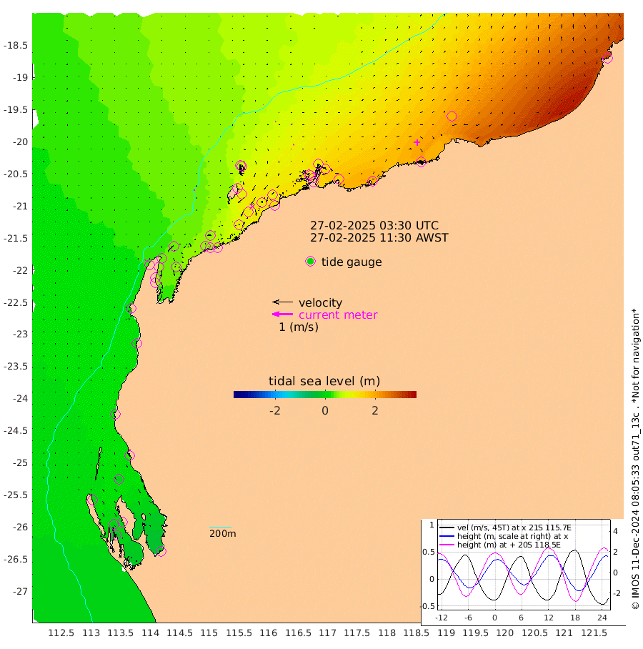 5cm/s -68T +12cm/s rms + 5cm/s -173T. NWSBAR 206m 2cm/s 40T +22cm/s rms + 10cm/s -148T. TAN100 109m 0cm/s -102T +11cm/s rms + 8cm/s -129T. PIL200 208m 2cm/s 49T +13cm/s rms + 7cm/s -137T. PIL100 105m 4cm/s 46T +12cm/s rms + 2cm/s -92T. PIL050 55m 3cm/s 39T +18cm/s rms + 4cm/s -149T. NRSNIN 61m 5cm/s 17T +6cm/s rms + 3cm/s 112T. NW Shelf M6 65m 7cm Withnell Point -7cm Denham -9cm Shark Bay (Inr Bn) -9cm Shark Bay -22cm Useless Loop -18cm Hamelin Pool 24cm Carnarvon 16cm Cape Cuvier 18cm Coral Bay 20cm Norwegian Bay 61cm Badjirrajirra 25cm Tantabiddi 43cm Point Murat 54cm Exmouth 67cm Learmonth 51cm Y Island 36cm North Muiron Island 46cm Roller 51cm Ashburton North 57cm Onslow (Beadon Creek) 53cm Thevenard Island 112cm Large Island 120cm North Sandy Island 82cm Barrow Island (Wapet Landing) 111cm Barrow Island (Tanker Mooring) 122cm Withnell Bay 81cm Trimouille Island 61cm North West Island 137cm Fortescue Road 112cm Steamboat Island 111cm Sholl Island 120cm Fairway Beacon 120cm Mawby Island 122cm Dampier (King Bay) 120cm Cape Legendre 137cm Hauy Island 156cm Port Walcott (Cape Lambert) 188cm Depuch Island 198cm Port Hedland 186cm Bedout Island 293cm Lagrange Bay