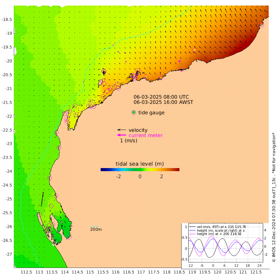 8cm/s -94T +12cm/s rms + 5cm/s -173T. NWSBAR 206m 4cm/s -137T +22cm/s rms + 10cm/s -148T. TAN100 109m 9cm/s -65T +11cm/s rms + 8cm/s -129T. PIL200 208m 16cm/s -37T +13cm/s rms + 7cm/s -137T. PIL100 105m 19cm/s -30T +12cm/s rms + 2cm/s -92T. PIL050 55m 4cm/s -125T +18cm/s rms + 4cm/s -149T. NRSNIN 61m 17cm/s -26T +6cm/s rms + 3cm/s 112T. NW Shelf M6 65m 47cm Withnell Point 52cm Denham 48cm Shark Bay (Inr Bn) 49cm Shark Bay 43cm Useless Loop -10cm Hamelin Pool 59cm Carnarvon 38cm Cape Cuvier 40cm Coral Bay 45cm Norwegian Bay 105cm Badjirrajirra 46cm Tantabiddi 76cm Point Murat 93cm Exmouth 101cm Learmonth 83cm Y Island 61cm North Muiron Island 69cm Roller 74cm Ashburton North 84cm Onslow (Beadon Creek) 76cm Thevenard Island 115cm Large Island 147cm North Sandy Island 109cm Barrow Island (Wapet Landing) 150cm Barrow Island (Tanker Mooring) 134cm Withnell Bay 103cm Trimouille Island 84cm North West Island 127cm Fortescue Road 138cm Steamboat Island 148cm Sholl Island 134cm Fairway Beacon 134cm Mawby Island 135cm Dampier (King Bay) 140cm Cape Legendre 154cm Hauy Island 169cm Port Walcott (Cape Lambert) 176cm Depuch Island 201cm Port Hedland 174cm Bedout Island 173cm Lagrange Bay