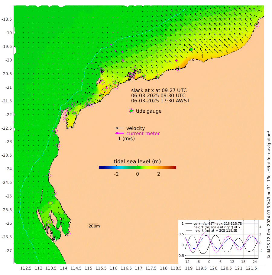 10cm/s -111T +12cm/s rms + 5cm/s -173T. NWSBAR 206m 10cm/s -138T +22cm/s rms + 10cm/s -148T. TAN100 109m 17cm/s -72T +11cm/s rms + 8cm/s -129T. PIL200 208m 29cm/s -48T +13cm/s rms + 7cm/s -137T. PIL100 105m 33cm/s -44T +12cm/s rms + 2cm/s -92T. PIL050 55m 10cm/s -129T +18cm/s rms + 4cm/s -149T. NRSNIN 61m 32cm/s -44T +6cm/s rms + 3cm/s 112T. NW Shelf M6 65m 32cm Withnell Point 52cm Denham 48cm Shark Bay (Inr Bn) 48cm Shark Bay 51cm Useless Loop 2cm Hamelin Pool 28cm Carnarvon 6cm Cape Cuvier 5cm Coral Bay 9cm Norwegian Bay 46cm Badjirrajirra 7cm Tantabiddi 29cm Point Murat 40cm Exmouth 40cm Learmonth 27cm Y Island 15cm North Muiron Island 15cm Roller 17cm Ashburton North 24cm Onslow (Beadon Creek) 18cm Thevenard Island 53cm Large Island 58cm North Sandy Island 34cm Barrow Island (Wapet Landing) 68cm Barrow Island (Tanker Mooring) 28cm Withnell Bay 30cm Trimouille Island 20cm North West Island 60cm Fortescue Road 35cm Steamboat Island 49cm Sholl Island 30cm Fairway Beacon 27cm Mawby Island 29cm Dampier (King Bay) 34cm Cape Legendre 47cm Hauy Island 42cm Port Walcott (Cape Lambert) 44cm Depuch Island 45cm Port Hedland 18cm Bedout Island -1cm Lagrange Bay