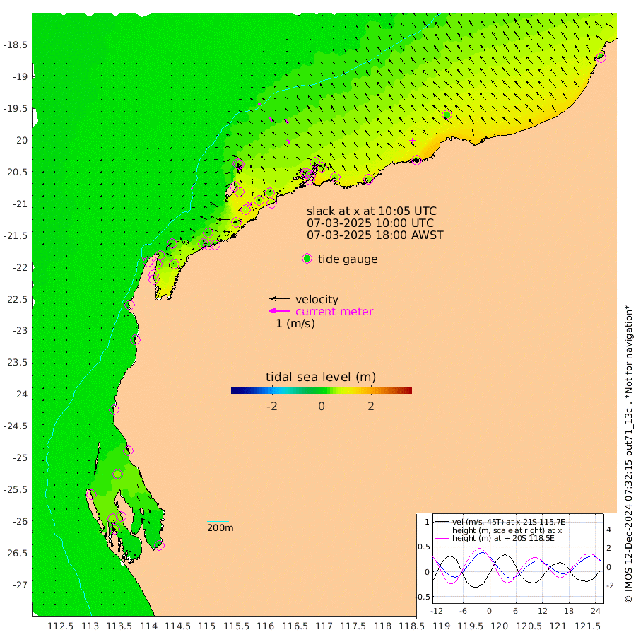 7cm/s -110T +12cm/s rms + 5cm/s -173T. NWSBAR 206m 7cm/s -138T +22cm/s rms + 10cm/s -148T. TAN100 109m 12cm/s -72T +11cm/s rms + 8cm/s -129T. PIL200 208m 21cm/s -46T +13cm/s rms + 7cm/s -137T. PIL100 105m 24cm/s -41T +12cm/s rms + 2cm/s -92T. PIL050 55m 7cm/s -128T +18cm/s rms + 4cm/s -149T. NRSNIN 61m 24cm/s -40T +6cm/s rms + 3cm/s 112T. NW Shelf M6 65m 36cm Withnell Point 51cm Denham 48cm Shark Bay (Inr Bn) 49cm Shark Bay 50cm Useless Loop 0cm Hamelin Pool 34cm Carnarvon 15cm Cape Cuvier 15cm Coral Bay 18cm Norwegian Bay 51cm Badjirrajirra 16cm Tantabiddi 35cm Point Murat 44cm Exmouth 45cm Learmonth 34cm Y Island 23cm North Muiron Island 23cm Roller 26cm Ashburton North 32cm Onslow (Beadon Creek) 27cm Thevenard Island 53cm Large Island 57cm North Sandy Island 41cm Barrow Island (Wapet Landing) 67cm Barrow Island (Tanker Mooring) 38cm Withnell Bay 34cm Trimouille Island 29cm North West Island 61cm Fortescue Road 41cm Steamboat Island 49cm Sholl Island 39cm Fairway Beacon 38cm Mawby Island 39cm Dampier (King Bay) 47cm Cape Legendre 51cm Hauy Island 50cm Port Walcott (Cape Lambert) 47cm Depuch Island 53cm Port Hedland 30cm Bedout Island 27cm Lagrange Bay