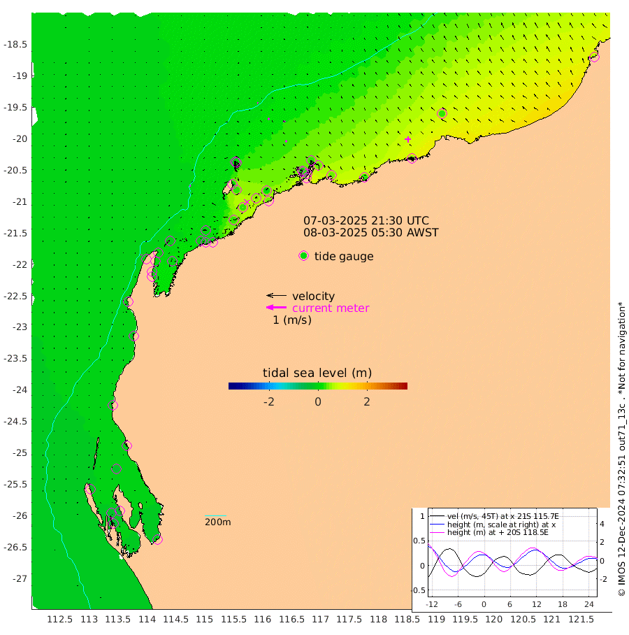 5cm/s -57T +12cm/s rms + 5cm/s -173T. NWSBAR 206m 3cm/s -155T +22cm/s rms + 10cm/s -148T. TAN100 109m 4cm/s -67T +11cm/s rms + 8cm/s -129T. PIL200 208m 8cm/s -49T +13cm/s rms + 7cm/s -137T. PIL100 105m 9cm/s -43T +12cm/s rms + 2cm/s -92T. PIL050 55m 2cm/s -138T +18cm/s rms + 4cm/s -149T. NRSNIN 61m 10cm/s -60T +6cm/s rms + 3cm/s 112T. NW Shelf M6 65m -16cm Withnell Point -28cm Denham -30cm Shark Bay (Inr Bn) -28cm Shark Bay -36cm Useless Loop -11cm Hamelin Pool -9cm Carnarvon -12cm Cape Cuvier -13cm Coral Bay -7cm Norwegian Bay 13cm Badjirrajirra -10cm Tantabiddi 2cm Point Murat 8cm Exmouth 13cm Learmonth 2cm Y Island -6cm North Muiron Island -2cm Roller 0cm Ashburton North 3cm Onslow (Beadon Creek) 1cm Thevenard Island 25cm Large Island 31cm North Sandy Island 14cm Barrow Island (Wapet Landing) 33cm Barrow Island (Tanker Mooring) 22cm Withnell Bay 19cm Trimouille Island -2cm North West Island 39cm Fortescue Road 18cm Steamboat Island 46cm Sholl Island 23cm Fairway Beacon 21cm Mawby Island 23cm Dampier (King Bay) 27cm Cape Legendre 38cm Hauy Island 36cm Port Walcott (Cape Lambert) 29cm Depuch Island 48cm Port Hedland 33cm Bedout Island 58cm Lagrange Bay