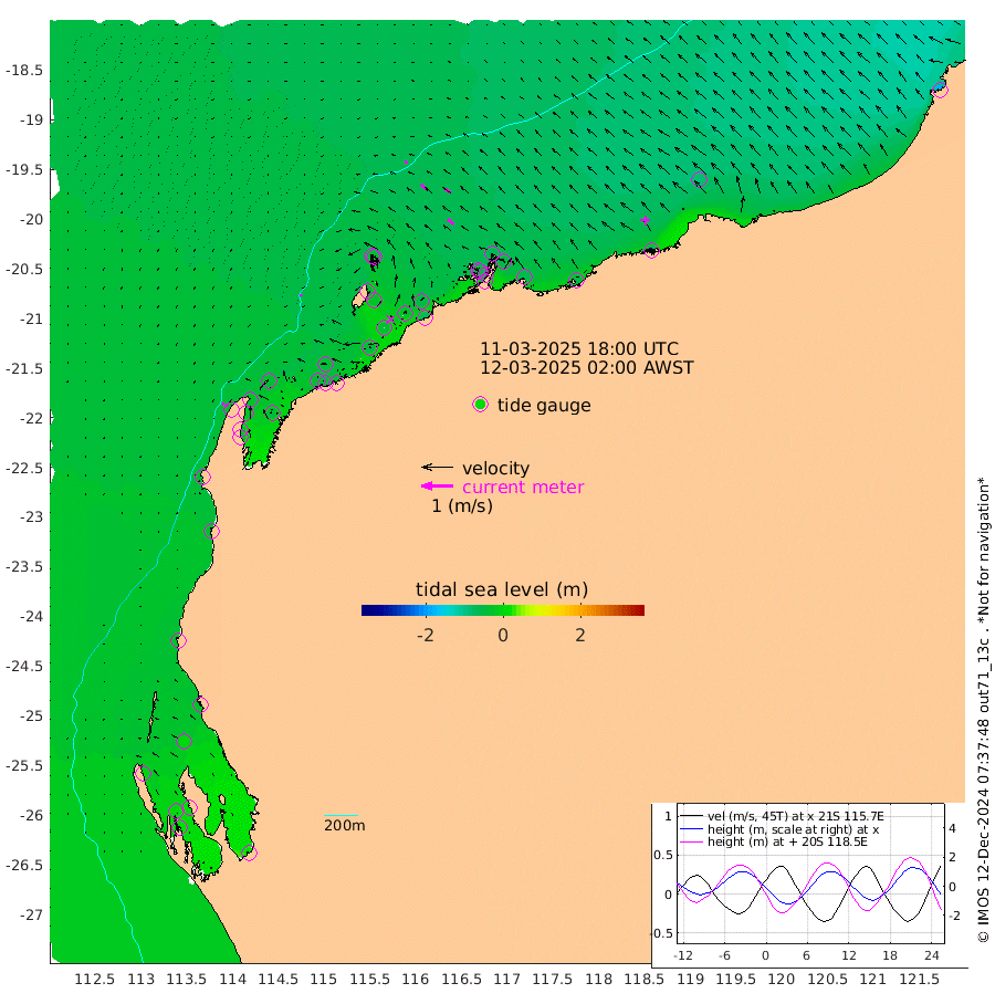 6cm/s -128T +12cm/s rms + 5cm/s -173T. NWSBAR 206m 9cm/s -136T +22cm/s rms + 10cm/s -148T. TAN100 109m 11cm/s -69T +11cm/s rms + 8cm/s -129T. PIL200 208m 20cm/s -55T +13cm/s rms + 7cm/s -137T. PIL100 105m 25cm/s -52T +12cm/s rms + 2cm/s -92T. PIL050 55m 10cm/s -135T +18cm/s rms + 4cm/s -149T. NRSNIN 61m 22cm/s -55T +6cm/s rms + 3cm/s 112T. NW Shelf M6 65m -11cm Withnell Point 7cm Denham 10cm Shark Bay (Inr Bn) 3cm Shark Bay 15cm Useless Loop 16cm Hamelin Pool -29cm Carnarvon -34cm Cape Cuvier -35cm Coral Bay -37cm Norwegian Bay -30cm Badjirrajirra -35cm Tantabiddi -31cm Point Murat -30cm Exmouth -26cm Learmonth -36cm Y Island -35cm North Muiron Island -36cm Roller -41cm Ashburton North -39cm Onslow (Beadon Creek) -42cm Thevenard Island -52cm Large Island -34cm North Sandy Island -42cm Barrow Island (Wapet Landing) -30cm Barrow Island (Tanker Mooring) -58cm Withnell Bay -37cm Trimouille Island -38cm North West Island -69cm Fortescue Road -46cm Steamboat Island -31cm Sholl Island -56cm Fairway Beacon -56cm Mawby Island -59cm Dampier (King Bay) -66cm Cape Legendre -51cm Hauy Island -60cm Port Walcott (Cape Lambert) -54cm Depuch Island -70cm Port Hedland -82cm Bedout Island -189cm Lagrange Bay