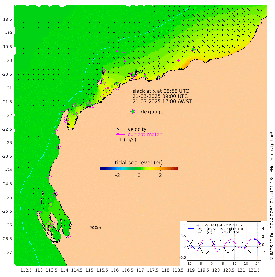 8cm/s -110T +12cm/s rms + 5cm/s -173T. NWSBAR 206m 8cm/s -138T +22cm/s rms + 10cm/s -148T. TAN100 109m 13cm/s -72T +11cm/s rms + 8cm/s -129T. PIL200 208m 24cm/s -49T +13cm/s rms + 7cm/s -137T. PIL100 105m 26cm/s -43T +12cm/s rms + 2cm/s -92T. PIL050 55m 7cm/s -129T +18cm/s rms + 4cm/s -149T. NRSNIN 61m 27cm/s -47T +6cm/s rms + 3cm/s 112T. NW Shelf M6 65m 26cm Withnell Point 43cm Denham 41cm Shark Bay (Inr Bn) 42cm Shark Bay 44cm Useless Loop 2cm Hamelin Pool 22cm Carnarvon 5cm Cape Cuvier 5cm Coral Bay 8cm Norwegian Bay 37cm Badjirrajirra 6cm Tantabiddi 23cm Point Murat 33cm Exmouth 33cm Learmonth 25cm Y Island 13cm North Muiron Island 14cm Roller 14cm Ashburton North 19cm Onslow (Beadon Creek) 15cm Thevenard Island 82cm Large Island 51cm North Sandy Island 28cm Barrow Island (Wapet Landing) 56cm Barrow Island (Tanker Mooring) 21cm Withnell Bay 26cm Trimouille Island 14cm North West Island 90cm Fortescue Road 16cm Steamboat Island 41cm Sholl Island 22cm Fairway Beacon 18cm Mawby Island 22cm Dampier (King Bay) 19cm Cape Legendre 34cm Hauy Island 32cm Port Walcott (Cape Lambert) 32cm Depuch Island 34cm Port Hedland 17cm Bedout Island 74cm Lagrange Bay