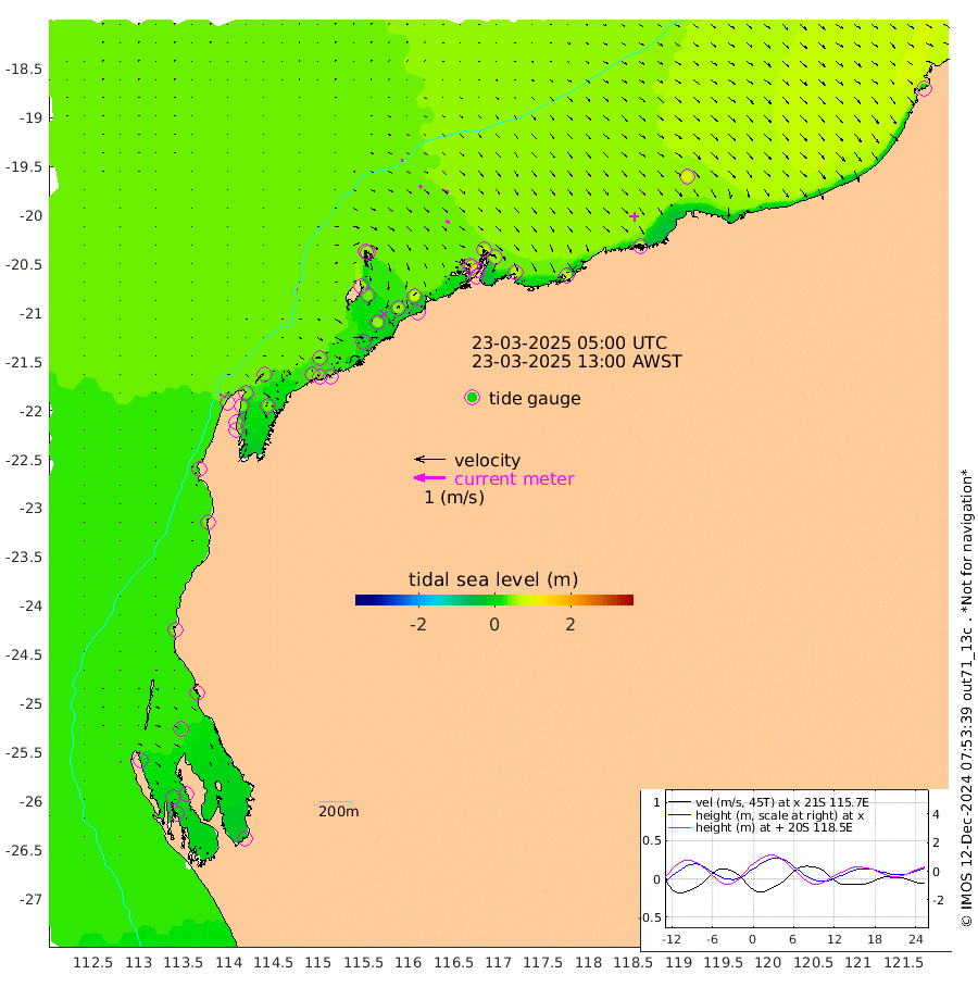 2cm/s 85T +12cm/s rms + 5cm/s -173T. NWSBAR 206m 6cm/s 38T +22cm/s rms + 10cm/s -148T. TAN100 109m 6cm/s 109T +11cm/s rms + 8cm/s -129T. PIL200 208m 11cm/s 123T +13cm/s rms + 7cm/s -137T. PIL100 105m 12cm/s 127T +12cm/s rms + 2cm/s -92T. PIL050 55m 5cm/s 44T +18cm/s rms + 4cm/s -149T. NRSNIN 61m 18cm/s 123T +6cm/s rms + 3cm/s 112T. NW Shelf M6 65m 22cm Withnell Point 14cm Denham 12cm Shark Bay (Inr Bn) 16cm Shark Bay 8cm Useless Loop -9cm Hamelin Pool 33cm Carnarvon 35cm Cape Cuvier 36cm Coral Bay 33cm Norwegian Bay 38cm Badjirrajirra 37cm Tantabiddi 37cm Point Murat 37cm Exmouth 36cm Learmonth 39cm Y Island 39cm North Muiron Island 41cm Roller 42cm Ashburton North 42cm Onslow (Beadon Creek) 43cm Thevenard Island 13cm Large Island 47cm North Sandy Island 46cm Barrow Island (Wapet Landing) 42cm Barrow Island (Tanker Mooring) 60cm Withnell Bay 46cm Trimouille Island 48cm North West Island -2cm Fortescue Road 73cm Steamboat Island 51cm Sholl Island 58cm Fairway Beacon 61cm Mawby Island 60cm Dampier (King Bay) 60cm Cape Legendre 55cm Hauy Island 65cm Port Walcott (Cape Lambert) 70cm Depuch Island 75cm Port Hedland 81cm Bedout Island 14cm Lagrange Bay