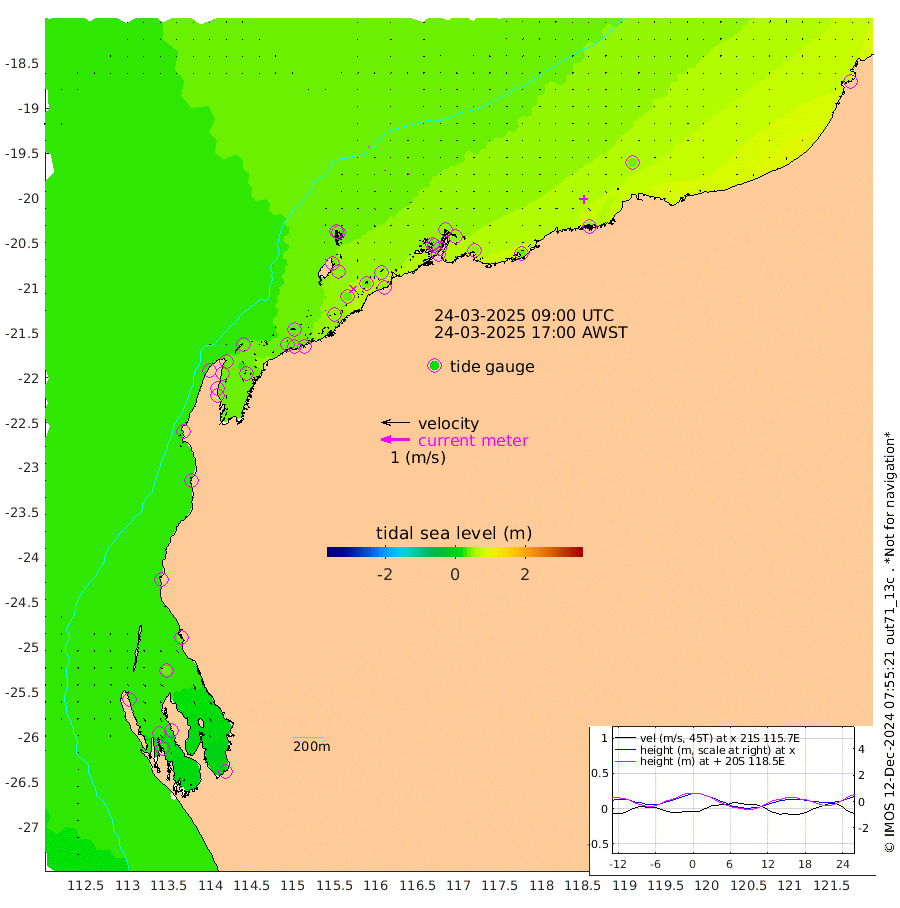 1cm/s -61T +12cm/s rms + 5cm/s -173T. NWSBAR 206m 0cm/s -126T +22cm/s rms + 10cm/s -148T. TAN100 109m 1cm/s 26T +11cm/s rms + 8cm/s -129T. PIL200 208m 2cm/s -14T +13cm/s rms + 7cm/s -137T. PIL100 105m 2cm/s 14T +12cm/s rms + 2cm/s -92T. PIL050 55m 1cm/s -83T +18cm/s rms + 4cm/s -149T. NRSNIN 61m 5cm/s 49T +6cm/s rms + 3cm/s 112T. NW Shelf M6 65m 30cm Withnell Point 33cm Denham 30cm Shark Bay (Inr Bn) 34cm Shark Bay 31cm Useless Loop -4cm Hamelin Pool 36cm Carnarvon 29cm Cape Cuvier 29cm Coral Bay 32cm Norwegian Bay 44cm Badjirrajirra 30cm Tantabiddi 37cm Point Murat 41cm Exmouth 35cm Learmonth 42cm Y Island 35cm North Muiron Island 36cm Roller 35cm Ashburton North 37cm Onslow (Beadon Creek) 36cm Thevenard Island 45cm Large Island 43cm North Sandy Island 41cm Barrow Island (Wapet Landing) 47cm Barrow Island (Tanker Mooring) 42cm Withnell Bay 33cm Trimouille Island 35cm North West Island 46cm Fortescue Road 49cm Steamboat Island 43cm Sholl Island 42cm Fairway Beacon 43cm Mawby Island 43cm Dampier (King Bay) 47cm Cape Legendre 46cm Hauy Island 46cm Port Walcott (Cape Lambert) 42cm Depuch Island 48cm Port Hedland 43cm Bedout Island 76cm Lagrange Bay