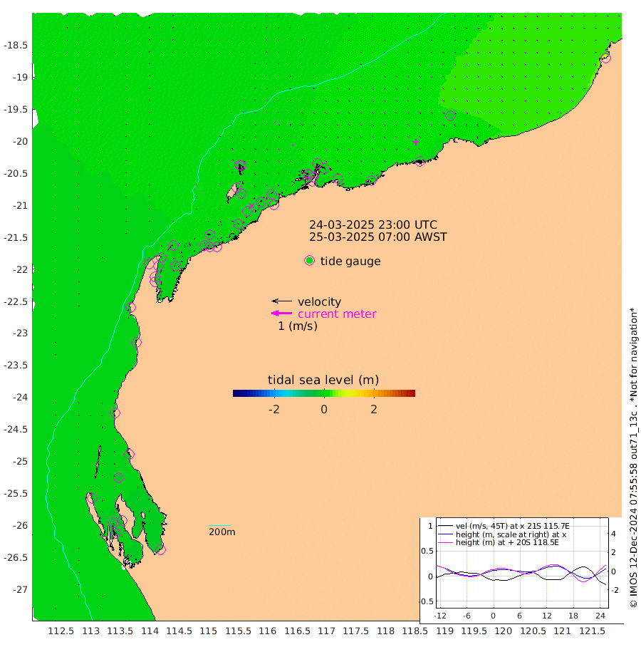2cm/s -4T +12cm/s rms + 5cm/s -173T. NWSBAR 206m 2cm/s 52T +22cm/s rms + 10cm/s -148T. TAN100 109m 3cm/s 112T +11cm/s rms + 8cm/s -129T. PIL200 208m 5cm/s 130T +13cm/s rms + 7cm/s -137T. PIL100 105m 6cm/s 128T +12cm/s rms + 2cm/s -92T. PIL050 55m 3cm/s 49T +18cm/s rms + 4cm/s -149T. NRSNIN 61m 4cm/s 115T +6cm/s rms + 3cm/s 112T. NW Shelf M6 65m -13cm Withnell Point -28cm Denham -28cm Shark Bay (Inr Bn) -28cm Shark Bay -34cm Useless Loop -10cm Hamelin Pool -6cm Carnarvon -4cm Cape Cuvier -5cm Coral Bay 0cm Norwegian Bay -6cm Badjirrajirra -5cm Tantabiddi -6cm Point Murat -6cm Exmouth -5cm Learmonth -3cm Y Island -5cm North Muiron Island -2cm Roller -3cm Ashburton North -4cm Onslow (Beadon Creek) -3cm Thevenard Island 11cm Large Island -3cm North Sandy Island -3cm Barrow Island (Wapet Landing) -4cm Barrow Island (Tanker Mooring) 2cm Withnell Bay -4cm Trimouille Island -10cm North West Island 29cm Fortescue Road -10cm Steamboat Island -5cm Sholl Island 3cm Fairway Beacon 3cm Mawby Island 1cm Dampier (King Bay) 8cm Cape Legendre 3cm Hauy Island 2cm Port Walcott (Cape Lambert) 2cm Depuch Island 4cm Port Hedland -1cm Bedout Island 98cm Lagrange Bay