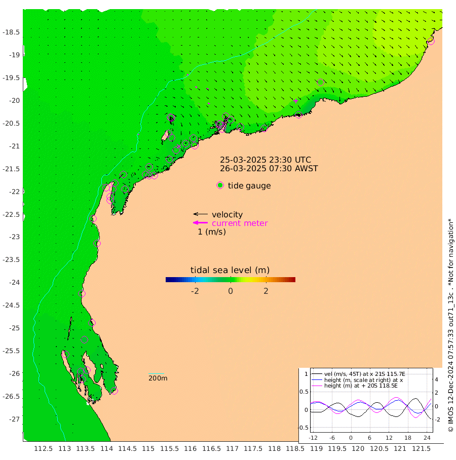 4cm/s 25T +12cm/s rms + 5cm/s -173T. NWSBAR 206m 4cm/s 46T +22cm/s rms + 10cm/s -148T. TAN100 109m 7cm/s 111T +11cm/s rms + 8cm/s -129T. PIL200 208m 12cm/s 127T +13cm/s rms + 7cm/s -137T. PIL100 105m 14cm/s 128T +12cm/s rms + 2cm/s -92T. PIL050 55m 5cm/s 49T +18cm/s rms + 4cm/s -149T. NRSNIN 61m 12cm/s 124T +6cm/s rms + 3cm/s 112T. NW Shelf M6 65m -10cm Withnell Point -27cm Denham -26cm Shark Bay (Inr Bn) -27cm Shark Bay -33cm Useless Loop -9cm Hamelin Pool -1cm Carnarvon 2cm Cape Cuvier 3cm Coral Bay 7cm Norwegian Bay 1cm Badjirrajirra 4cm Tantabiddi 1cm Point Murat 0cm Exmouth 1cm Learmonth 5cm Y Island 4cm North Muiron Island 7cm Roller 8cm Ashburton North 7cm Onslow (Beadon Creek) 8cm Thevenard Island 10cm Large Island 4cm North Sandy Island 9cm Barrow Island (Wapet Landing) 2cm Barrow Island (Tanker Mooring) 21cm Withnell Bay 8cm Trimouille Island 1cm North West Island 29cm Fortescue Road 6cm Steamboat Island 3cm Sholl Island 20cm Fairway Beacon 20cm Mawby Island 20cm Dampier (King Bay) 29cm Cape Legendre 18cm Hauy Island 21cm Port Walcott (Cape Lambert) 22cm Depuch Island 29cm Port Hedland 31cm Bedout Island 129cm Lagrange Bay