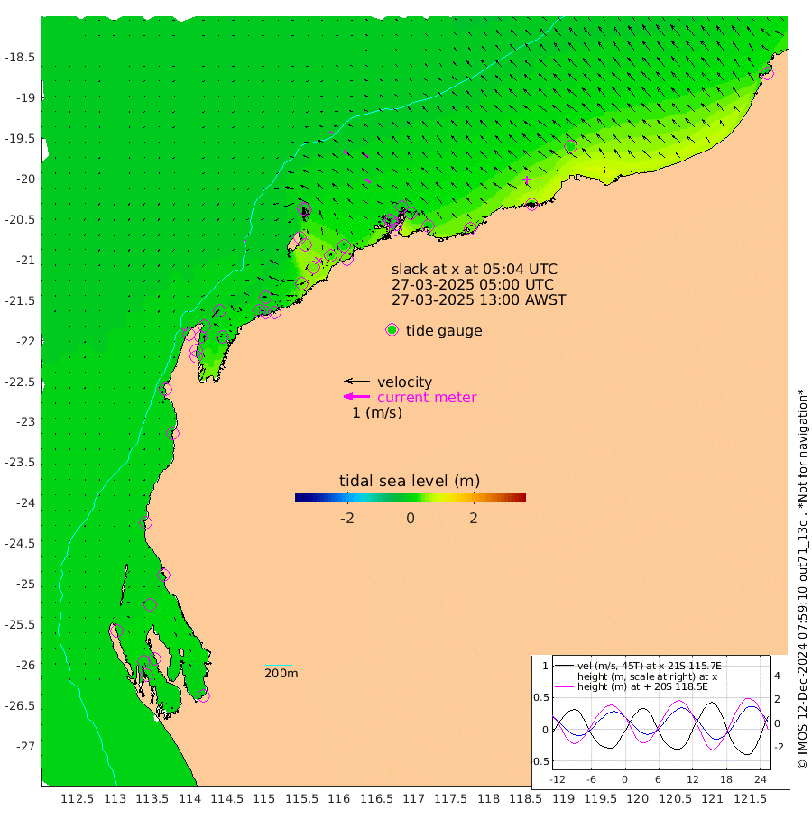 7cm/s -125T +12cm/s rms + 5cm/s -173T. NWSBAR 206m 4cm/s -135T +22cm/s rms + 10cm/s -148T. TAN100 109m 12cm/s -76T +11cm/s rms + 8cm/s -129T. PIL200 208m 19cm/s -55T +13cm/s rms + 7cm/s -137T. PIL100 105m 22cm/s -51T +12cm/s rms + 2cm/s -92T. PIL050 55m 4cm/s -124T +18cm/s rms + 4cm/s -149T. NRSNIN 61m 18cm/s -52T +6cm/s rms + 3cm/s 112T. NW Shelf M6 65m 2cm Withnell Point 9cm Denham 6cm Shark Bay (Inr Bn) 8cm Shark Bay 3cm Useless Loop -5cm Hamelin Pool 2cm Carnarvon -7cm Cape Cuvier -8cm Coral Bay -10cm Norwegian Bay 12cm Badjirrajirra -6cm Tantabiddi 5cm Point Murat 10cm Exmouth 14cm Learmonth 2cm Y Island -3cm North Muiron Island -1cm Roller -1cm Ashburton North 2cm Onslow (Beadon Creek) -1cm Thevenard Island 37cm Large Island 39cm North Sandy Island 10cm Barrow Island (Wapet Landing) 34cm Barrow Island (Tanker Mooring) 9cm Withnell Bay 11cm Trimouille Island 5cm North West Island 35cm Fortescue Road 15cm Steamboat Island 29cm Sholl Island 11cm Fairway Beacon 9cm Mawby Island 10cm Dampier (King Bay) -1cm Cape Legendre 21cm Hauy Island 22cm Port Walcott (Cape Lambert) 35cm Depuch Island 27cm Port Hedland 16cm Bedout Island -20cm Lagrange Bay