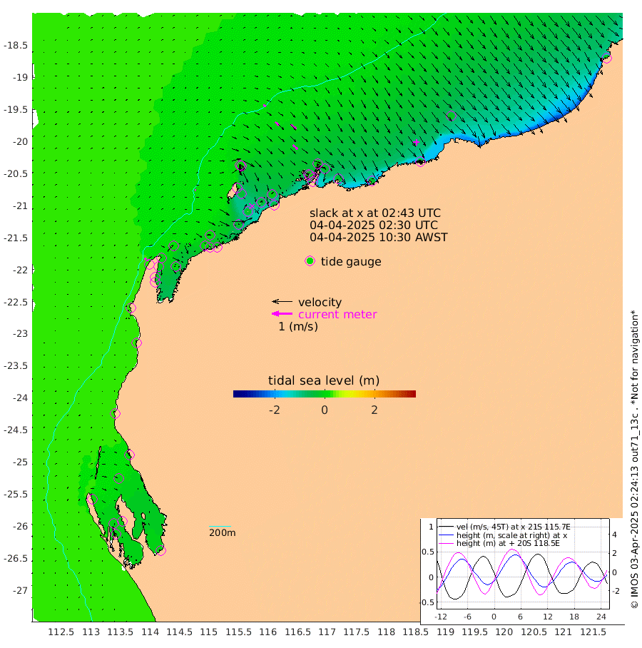 7cm/s 82T +12cm/s rms + 5cm/s -173T. NWSBAR 206m 11cm/s 39T +22cm/s rms + 10cm/s -148T. TAN100 109m 14cm/s 110T +11cm/s rms + 8cm/s -129T. PIL200 208m 26cm/s 130T +13cm/s rms + 7cm/s -137T. PIL100 105m 31cm/s 133T +12cm/s rms + 2cm/s -92T. PIL050 55m 11cm/s 48T +18cm/s rms + 4cm/s -149T. NRSNIN 61m 33cm/s 131T +6cm/s rms + 3cm/s 112T. NW Shelf M6 65m 12cm Withnell Point -2cm Denham -1cm Shark Bay (Inr Bn) 2cm Shark Bay -5cm Useless Loop -6cm Hamelin Pool 16cm Carnarvon 30cm Cape Cuvier 30cm Coral Bay 24cm Norwegian Bay -14cm Badjirrajirra 26cm Tantabiddi 5cm Point Murat -6cm Exmouth -12cm Learmonth 5cm Y Island 18cm North Muiron Island 17cm Roller 14cm Ashburton North 7cm Onslow (Beadon Creek) 13cm Thevenard Island -33cm Large Island -32cm North Sandy Island -7cm Barrow Island (Wapet Landing) -41cm Barrow Island (Tanker Mooring) -8cm Withnell Bay -8cm Trimouille Island 11cm North West Island -50cm Fortescue Road -11cm Steamboat Island -43cm Sholl Island -10cm Fairway Beacon -6cm Mawby Island -9cm Dampier (King Bay) -9cm Cape Legendre -32cm Hauy Island -28cm Port Walcott (Cape Lambert) -28cm Depuch Island -39cm Port Hedland -19cm Bedout Island -15cm Lagrange Bay
