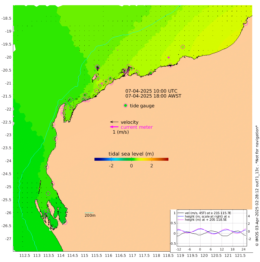 1cm/s 25T +12cm/s rms + 5cm/s -173T. NWSBAR 206m 1cm/s -156T +22cm/s rms + 10cm/s -148T. TAN100 109m 1cm/s 97T +11cm/s rms + 8cm/s -129T. PIL200 208m 2cm/s 44T +13cm/s rms + 7cm/s -137T. PIL100 105m 3cm/s 75T +12cm/s rms + 2cm/s -92T. PIL050 55m 0cm/s -79T +18cm/s rms + 4cm/s -149T. NRSNIN 61m 7cm/s -27T +6cm/s rms + 3cm/s 112T. NW Shelf M6 65m 24cm Withnell Point 27cm Denham 26cm Shark Bay (Inr Bn) 29cm Shark Bay 26cm Useless Loop -3cm Hamelin Pool 30cm Carnarvon 24cm Cape Cuvier 25cm Coral Bay 26cm Norwegian Bay 40cm Badjirrajirra 25cm Tantabiddi 32cm Point Murat 36cm Exmouth 37cm Learmonth 34cm Y Island 28cm North Muiron Island 28cm Roller 32cm Ashburton North 34cm Onslow (Beadon Creek) 33cm Thevenard Island 57cm Large Island 40cm North Sandy Island 40cm Barrow Island (Wapet Landing) 45cm Barrow Island (Tanker Mooring) 43cm Withnell Bay 30cm Trimouille Island 32cm North West Island 65cm Fortescue Road 32cm Steamboat Island 41cm Sholl Island 42cm Fairway Beacon 44cm Mawby Island 45cm Dampier (King Bay) 50cm Cape Legendre 44cm Hauy Island 49cm Port Walcott (Cape Lambert) 32cm Depuch Island 54cm Port Hedland 49cm Bedout Island 90cm Lagrange Bay