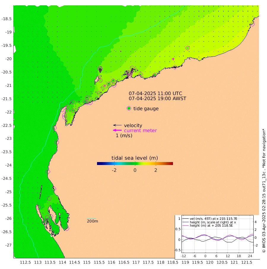1cm/s -10T +12cm/s rms + 5cm/s -173T. NWSBAR 206m 2cm/s -145T +22cm/s rms + 10cm/s -148T. TAN100 109m 1cm/s -72T +11cm/s rms + 8cm/s -129T. PIL200 208m 2cm/s -14T +13cm/s rms + 7cm/s -137T. PIL100 105m 2cm/s 12T +12cm/s rms + 2cm/s -92T. PIL050 55m 1cm/s -122T +18cm/s rms + 4cm/s -149T. NRSNIN 61m 12cm/s -41T +6cm/s rms + 3cm/s 112T. NW Shelf M6 65m 23cm Withnell Point 28cm Denham 27cm Shark Bay (Inr Bn) 29cm Shark Bay 28cm Useless Loop -1cm Hamelin Pool 25cm Carnarvon 17cm Cape Cuvier 18cm Coral Bay 19cm Norwegian Bay 34cm Badjirrajirra 19cm Tantabiddi 26cm Point Murat 30cm Exmouth 33cm Learmonth 26cm Y Island 21cm North Muiron Island 21cm Roller 26cm Ashburton North 28cm Onslow (Beadon Creek) 27cm Thevenard Island 42cm Large Island 35cm North Sandy Island 34cm Barrow Island (Wapet Landing) 40cm Barrow Island (Tanker Mooring) 38cm Withnell Bay 25cm Trimouille Island 27cm North West Island 49cm Fortescue Road 27cm Steamboat Island 33cm Sholl Island 37cm Fairway Beacon 39cm Mawby Island 39cm Dampier (King Bay) 47cm Cape Legendre 40cm Hauy Island 45cm Port Walcott (Cape Lambert) 33cm Depuch Island 50cm Port Hedland 42cm Bedout Island 57cm Lagrange Bay