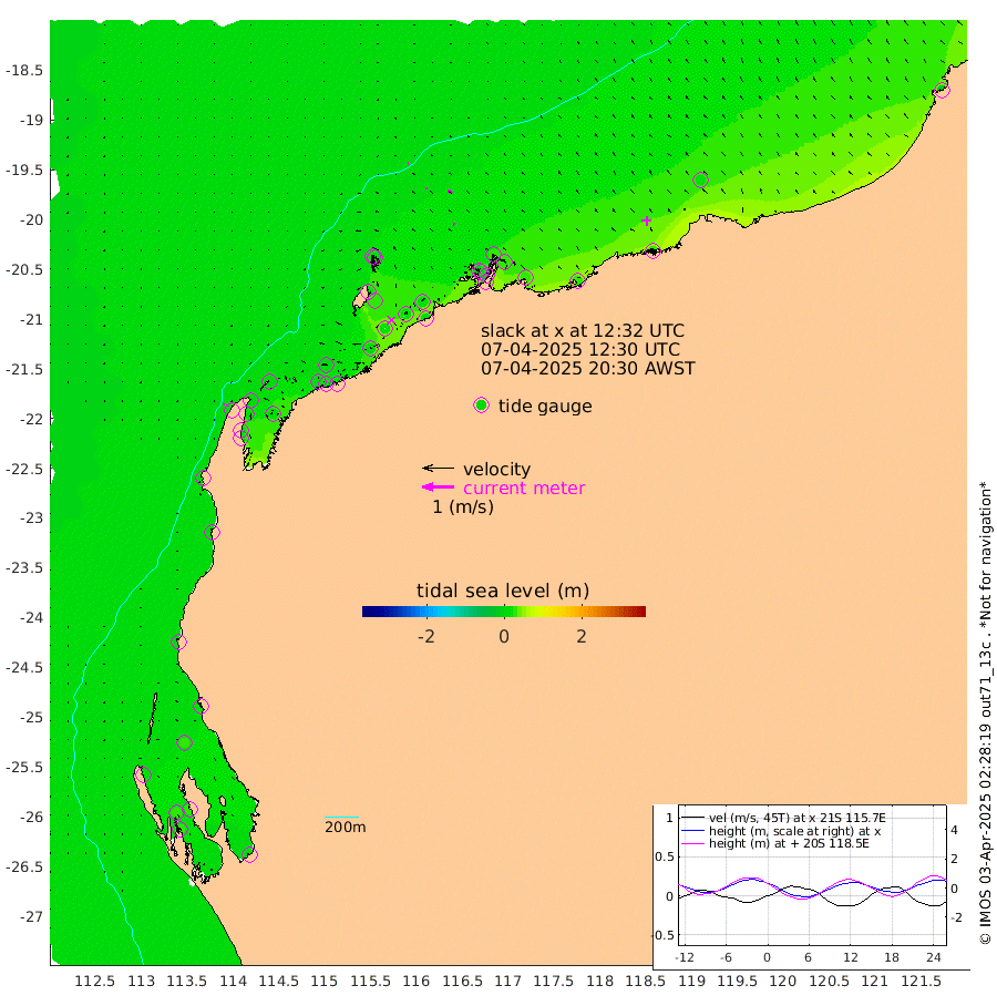 1cm/s -118T +12cm/s rms + 5cm/s -173T. NWSBAR 206m 3cm/s -139T +22cm/s rms + 10cm/s -148T. TAN100 109m 3cm/s -72T +11cm/s rms + 8cm/s -129T. PIL200 208m 5cm/s -41T +13cm/s rms + 7cm/s -137T. PIL100 105m 6cm/s -34T +12cm/s rms + 2cm/s -92T. PIL050 55m 3cm/s -130T +18cm/s rms + 4cm/s -149T. NRSNIN 61m 15cm/s -48T +6cm/s rms + 3cm/s 112T. NW Shelf M6 65m 15cm Withnell Point 25cm Denham 25cm Shark Bay (Inr Bn) 24cm Shark Bay 27cm Useless Loop 4cm Hamelin Pool 11cm Carnarvon 3cm Cape Cuvier 3cm Coral Bay 3cm Norwegian Bay 16cm Badjirrajirra 4cm Tantabiddi 11cm Point Murat 14cm Exmouth 18cm Learmonth 8cm Y Island 6cm North Muiron Island 5cm Roller 9cm Ashburton North 11cm Onslow (Beadon Creek) 10cm Thevenard Island 6cm Large Island 18cm North Sandy Island 16cm Barrow Island (Wapet Landing) 23cm Barrow Island (Tanker Mooring) 19cm Withnell Bay 11cm Trimouille Island 14cm North West Island 9cm Fortescue Road 12cm Steamboat Island 11cm Sholl Island 18cm Fairway Beacon 20cm Mawby Island 19cm Dampier (King Bay) 26cm Cape Legendre 23cm Hauy Island 25cm Port Walcott (Cape Lambert) 25cm Depuch Island 29cm Port Hedland 21cm Bedout Island -13cm Lagrange Bay