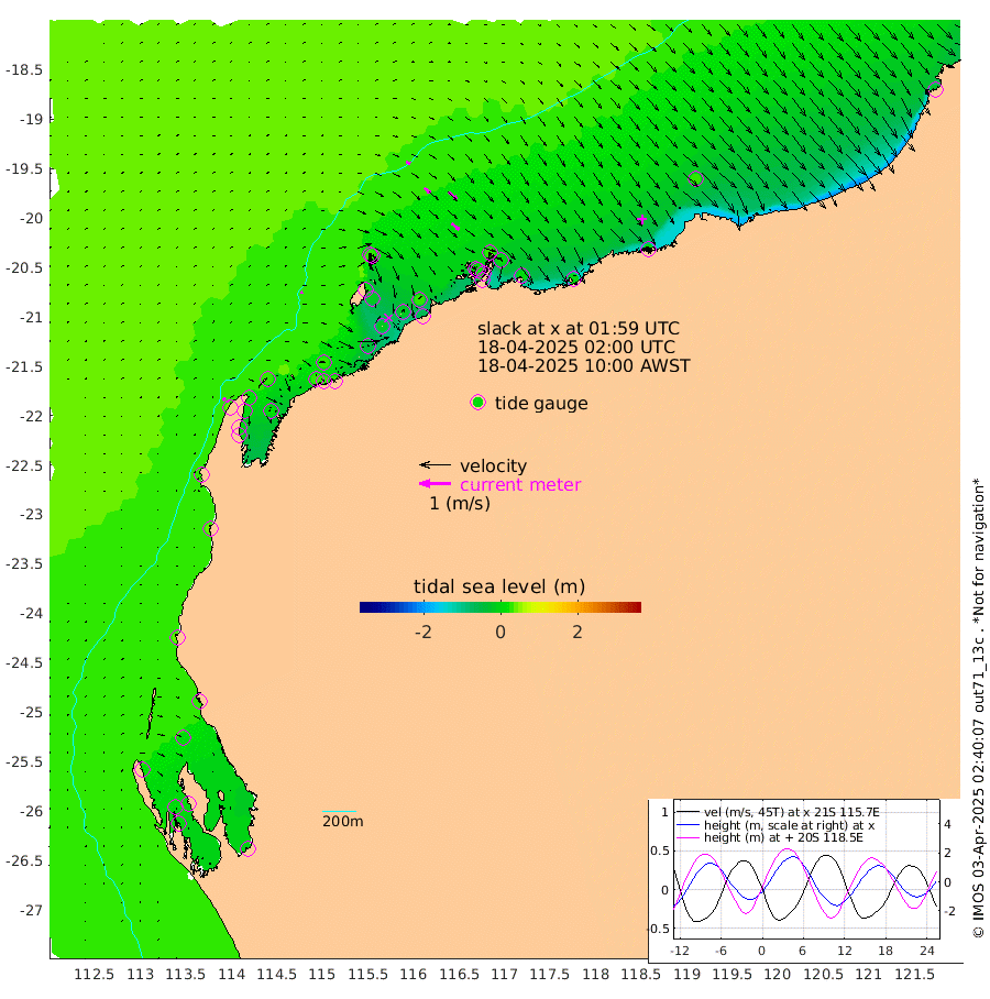 7cm/s 74T +12cm/s rms + 5cm/s -173T. NWSBAR 206m 10cm/s 40T +22cm/s rms + 10cm/s -148T. TAN100 109m 14cm/s 110T +11cm/s rms + 8cm/s -129T. PIL200 208m 27cm/s 128T +13cm/s rms + 7cm/s -137T. PIL100 105m 31cm/s 131T +12cm/s rms + 2cm/s -92T. PIL050 55m 10cm/s 48T +18cm/s rms + 4cm/s -149T. NRSNIN 61m 34cm/s 131T +6cm/s rms + 3cm/s 112T. NW Shelf M6 65m 19cm Withnell Point 5cm Denham 6cm Shark Bay (Inr Bn) 10cm Shark Bay 3cm Useless Loop -7cm Hamelin Pool 26cm Carnarvon 36cm Cape Cuvier 37cm Coral Bay 33cm Norwegian Bay 5cm Badjirrajirra 35cm Tantabiddi 19cm Point Murat 10cm Exmouth 3cm Learmonth 20cm Y Island 29cm North Muiron Island 29cm Roller 28cm Ashburton North 23cm Onslow (Beadon Creek) 28cm Thevenard Island -44cm Large Island -12cm North Sandy Island 14cm Barrow Island (Wapet Landing) -16cm Barrow Island (Tanker Mooring) 21cm Withnell Bay 15cm Trimouille Island 27cm North West Island -61cm Fortescue Road 27cm Steamboat Island -15cm Sholl Island 18cm Fairway Beacon 20cm Mawby Island 19cm Dampier (King Bay) 26cm Cape Legendre 1cm Hauy Island 7cm Port Walcott (Cape Lambert) 8cm Depuch Island 2cm Port Hedland 25cm Bedout Island -32cm Lagrange Bay