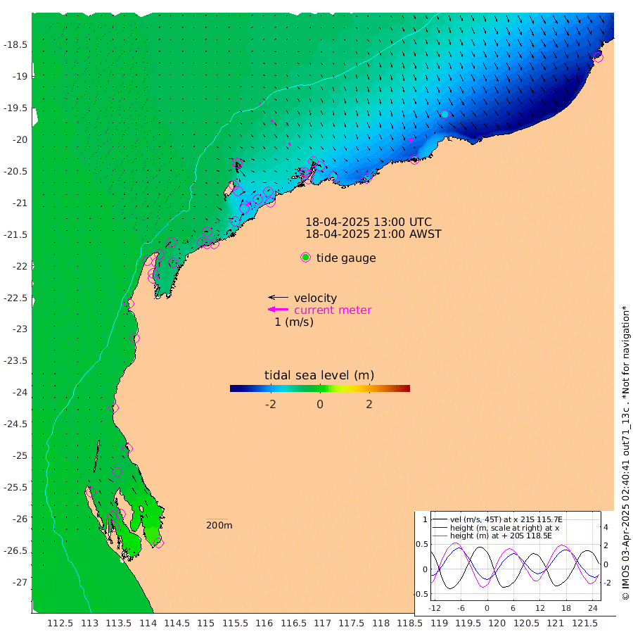 7cm/s 85T +12cm/s rms + 5cm/s -173T. NWSBAR 206m 1cm/s 52T +22cm/s rms + 10cm/s -148T. TAN100 109m 7cm/s 111T +11cm/s rms + 8cm/s -129T. PIL200 208m 12cm/s 138T +13cm/s rms + 7cm/s -137T. PIL100 105m 15cm/s 147T +12cm/s rms + 2cm/s -92T. PIL050 55m 1cm/s 129T +18cm/s rms + 4cm/s -149T. NRSNIN 61m 11cm/s 167T +6cm/s rms + 3cm/s 112T. NW Shelf M6 65m -41cm Withnell Point -30cm Denham -25cm Shark Bay (Inr Bn) -31cm Shark Bay -13cm Useless Loop 23cm Hamelin Pool -57cm Carnarvon -41cm Cape Cuvier -41cm Coral Bay -46cm Norwegian Bay -93cm Badjirrajirra -47cm Tantabiddi -71cm Point Murat -84cm Exmouth -90cm Learmonth -78cm Y Island -60cm North Muiron Island -69cm Roller -69cm Ashburton North -77cm Onslow (Beadon Creek) -72cm Thevenard Island -144cm Large Island -140cm North Sandy Island -99cm Barrow Island (Wapet Landing) -138cm Barrow Island (Tanker Mooring) -121cm Withnell Bay -96cm Trimouille Island -78cm North West Island -156cm Fortescue Road -128cm Steamboat Island -132cm Sholl Island -122cm Fairway Beacon -120cm Mawby Island -122cm Dampier (King Bay) -119cm Cape Legendre -141cm Hauy Island -151cm Port Walcott (Cape Lambert) -171cm Depuch Island -178cm Port Hedland -149cm Bedout Island -259cm Lagrange Bay
