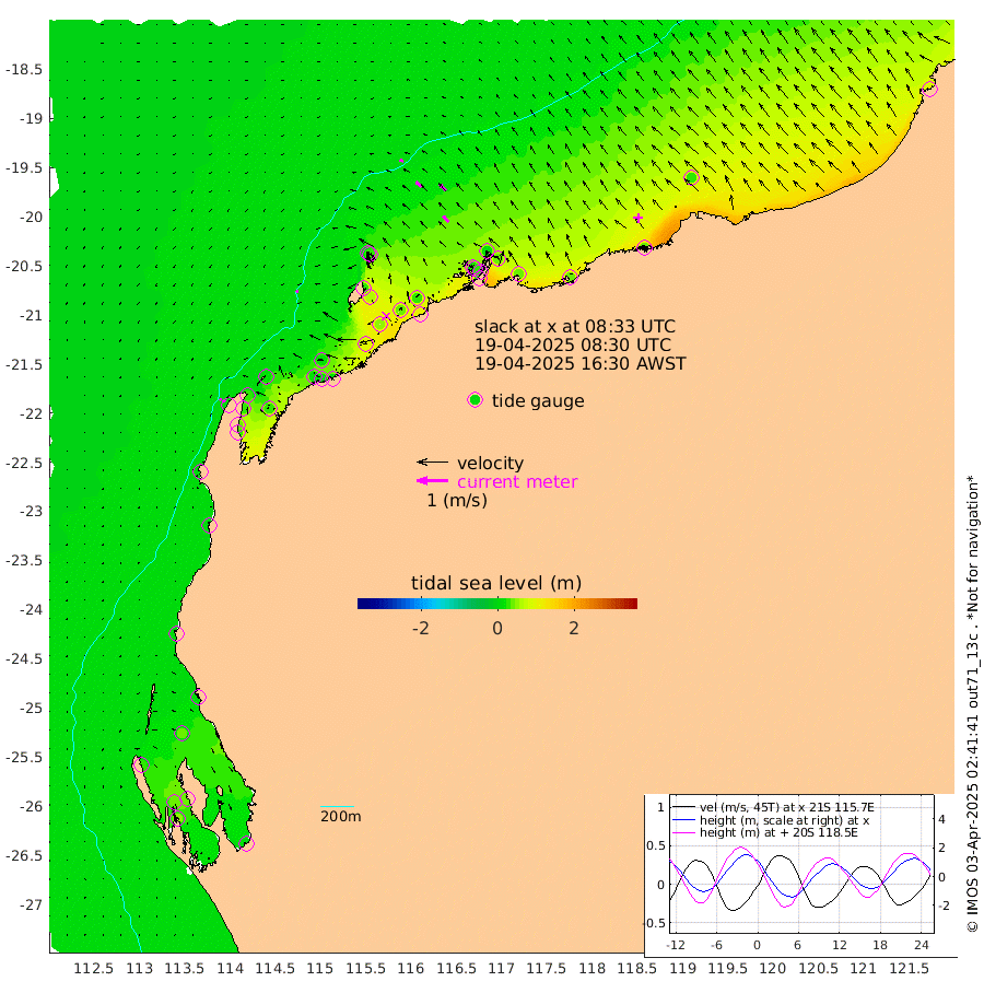 7cm/s -107T +12cm/s rms + 5cm/s -173T. NWSBAR 206m 9cm/s -138T +22cm/s rms + 10cm/s -148T. TAN100 109m 13cm/s -72T +11cm/s rms + 8cm/s -129T. PIL200 208m 24cm/s -49T +13cm/s rms + 7cm/s -137T. PIL100 105m 27cm/s -44T +12cm/s rms + 2cm/s -92T. PIL050 55m 9cm/s -130T +18cm/s rms + 4cm/s -149T. NRSNIN 61m 30cm/s -46T +6cm/s rms + 3cm/s 112T. NW Shelf M6 65m 25cm Withnell Point 44cm Denham 42cm Shark Bay (Inr Bn) 43cm Shark Bay 45cm Useless Loop 4cm Hamelin Pool 20cm Carnarvon 2cm Cape Cuvier 2cm Coral Bay 5cm Norwegian Bay 37cm Badjirrajirra 4cm Tantabiddi 23cm Point Murat 33cm Exmouth 33cm Learmonth 25cm Y Island 12cm North Muiron Island 13cm Roller 14cm Ashburton North 19cm Onslow (Beadon Creek) 15cm Thevenard Island 94cm Large Island 52cm North Sandy Island 29cm Barrow Island (Wapet Landing) 59cm Barrow Island (Tanker Mooring) 25cm Withnell Bay 26cm Trimouille Island 16cm North West Island 102cm Fortescue Road 23cm Steamboat Island 45cm Sholl Island 26cm Fairway Beacon 22cm Mawby Island 26cm Dampier (King Bay) 21cm Cape Legendre 41cm Hauy Island 38cm Port Walcott (Cape Lambert) 42cm Depuch Island 43cm Port Hedland 27cm Bedout Island 94cm Lagrange Bay