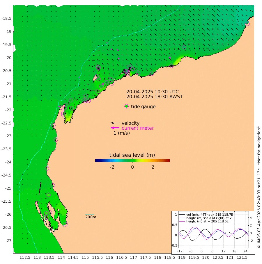 4cm/s -132T +12cm/s rms + 5cm/s -173T. NWSBAR 206m 8cm/s -139T +22cm/s rms + 10cm/s -148T. TAN100 109m 10cm/s -74T +11cm/s rms + 8cm/s -129T. PIL200 208m 17cm/s -53T +13cm/s rms + 7cm/s -137T. PIL100 105m 20cm/s -50T +12cm/s rms + 2cm/s -92T. PIL050 55m 8cm/s -132T +18cm/s rms + 4cm/s -149T. NRSNIN 61m 29cm/s -54T +6cm/s rms + 3cm/s 112T. NW Shelf M6 65m 6cm Withnell Point 28cm Denham 29cm Shark Bay (Inr Bn) 27cm Shark Bay 36cm Useless Loop 11cm Hamelin Pool -8cm Carnarvon -18cm Cape Cuvier -18cm Coral Bay -17cm Norwegian Bay -16cm Badjirrajirra -20cm Tantabiddi -16cm Point Murat -14cm Exmouth -18cm Learmonth -19cm Y Island -20cm North Muiron Island -25cm Roller -25cm Ashburton North -24cm Onslow (Beadon Creek) -25cm Thevenard Island 18cm Large Island -28cm North Sandy Island -27cm Barrow Island (Wapet Landing) -20cm Barrow Island (Tanker Mooring) -47cm Withnell Bay -29cm Trimouille Island -27cm North West Island 19cm Fortescue Road -52cm Steamboat Island -36cm Sholl Island -46cm Fairway Beacon -50cm Mawby Island -47cm Dampier (King Bay) -49cm Cape Legendre -41cm Hauy Island -52cm Port Walcott (Cape Lambert) -54cm Depuch Island -66cm Port Hedland -73cm Bedout Island -56cm Lagrange Bay