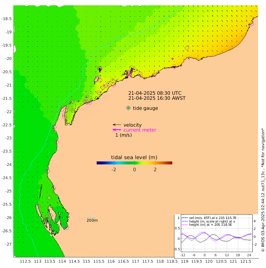 2cm/s -82T +12cm/s rms + 5cm/s -173T. NWSBAR 206m 3cm/s -139T +22cm/s rms + 10cm/s -148T. TAN100 109m 3cm/s -58T +11cm/s rms + 8cm/s -129T. PIL200 208m 8cm/s -41T +13cm/s rms + 7cm/s -137T. PIL100 105m 9cm/s -33T +12cm/s rms + 2cm/s -92T. PIL050 55m 3cm/s -126T +18cm/s rms + 4cm/s -149T. NRSNIN 61m 11cm/s -21T +6cm/s rms + 3cm/s 112T. NW Shelf M6 65m 29cm Withnell Point 35cm Denham 33cm Shark Bay (Inr Bn) 37cm Shark Bay 33cm Useless Loop -3cm Hamelin Pool 34cm Carnarvon 23cm Cape Cuvier 23cm Coral Bay 27cm Norwegian Bay 52cm Badjirrajirra 26cm Tantabiddi 39cm Point Murat 47cm Exmouth 45cm Learmonth 46cm Y Island 34cm North Muiron Island 37cm Roller 37cm Ashburton North 41cm Onslow (Beadon Creek) 39cm Thevenard Island 78cm Large Island 63cm North Sandy Island 51cm Barrow Island (Wapet Landing) 68cm Barrow Island (Tanker Mooring) 58cm Withnell Bay 42cm Trimouille Island 41cm North West Island 85cm Fortescue Road 63cm Steamboat Island 64cm Sholl Island 58cm Fairway Beacon 58cm Mawby Island 59cm Dampier (King Bay) 60cm Cape Legendre 68cm Hauy Island 70cm Port Walcott (Cape Lambert) 73cm Depuch Island 81cm Port Hedland 71cm Bedout Island 130cm Lagrange Bay