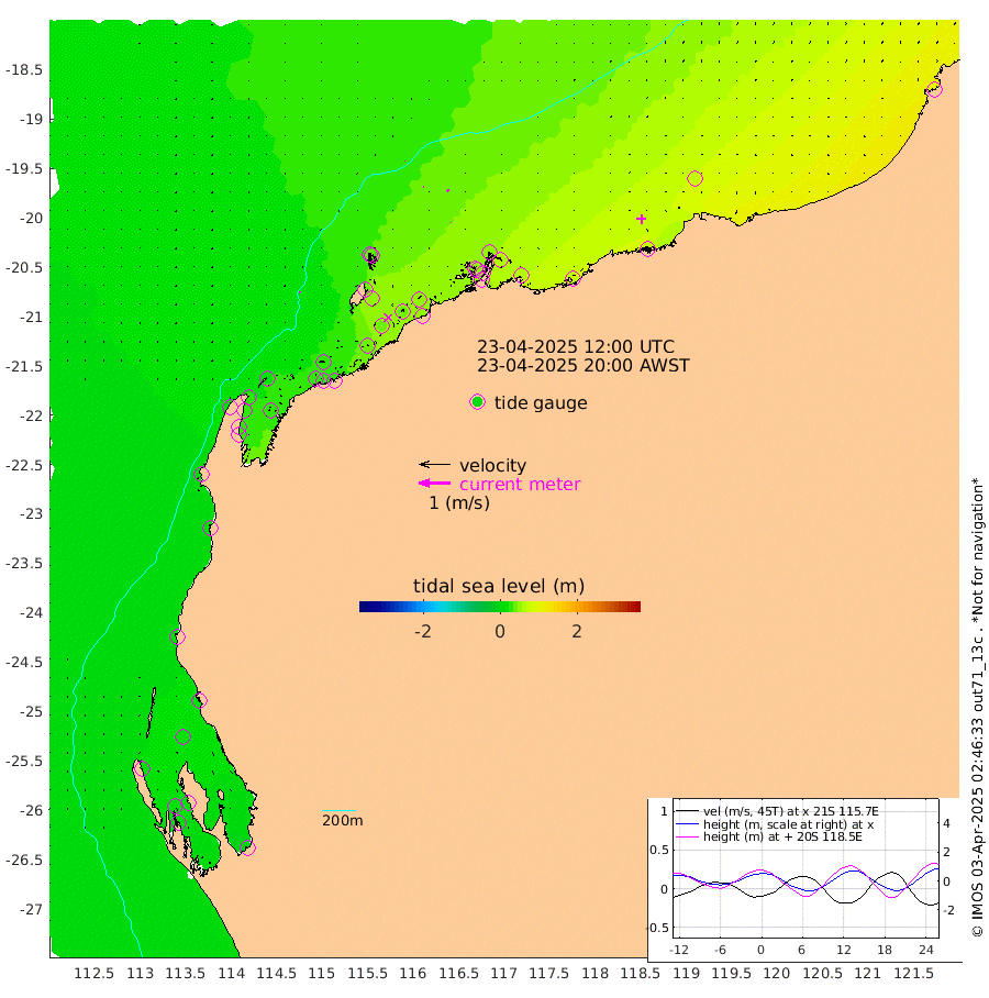 2cm/s -40T +12cm/s rms + 5cm/s -173T. NWSBAR 206m 1cm/s -149T +22cm/s rms + 10cm/s -148T. TAN100 109m 1cm/s 48T +11cm/s rms + 8cm/s -129T. PIL200 208m 1cm/s 52T +13cm/s rms + 7cm/s -137T. PIL100 105m 2cm/s 64T +12cm/s rms + 2cm/s -92T. PIL050 55m 1cm/s -120T +18cm/s rms + 4cm/s -149T. NRSNIN 61m 8cm/s -25T +6cm/s rms + 3cm/s 112T. NW Shelf M6 65m 16cm Withnell Point 19cm Denham 17cm Shark Bay (Inr Bn) 19cm Shark Bay 17cm Useless Loop -4cm Hamelin Pool 20cm Carnarvon 12cm Cape Cuvier 13cm Coral Bay 15cm Norwegian Bay 31cm Badjirrajirra 16cm Tantabiddi 23cm Point Murat 29cm Exmouth 31cm Learmonth 28cm Y Island 21cm North Muiron Island 24cm Roller 26cm Ashburton North 28cm Onslow (Beadon Creek) 28cm Thevenard Island 38cm Large Island 45cm North Sandy Island 38cm Barrow Island (Wapet Landing) 46cm Barrow Island (Tanker Mooring) 53cm Withnell Bay 29cm Trimouille Island 34cm North West Island 49cm Fortescue Road 49cm Steamboat Island 40cm Sholl Island 50cm Fairway Beacon 52cm Mawby Island 52cm Dampier (King Bay) 55cm Cape Legendre 60cm Hauy Island 63cm Port Walcott (Cape Lambert) 78cm Depuch Island 77cm Port Hedland 69cm Bedout Island 106cm Lagrange Bay