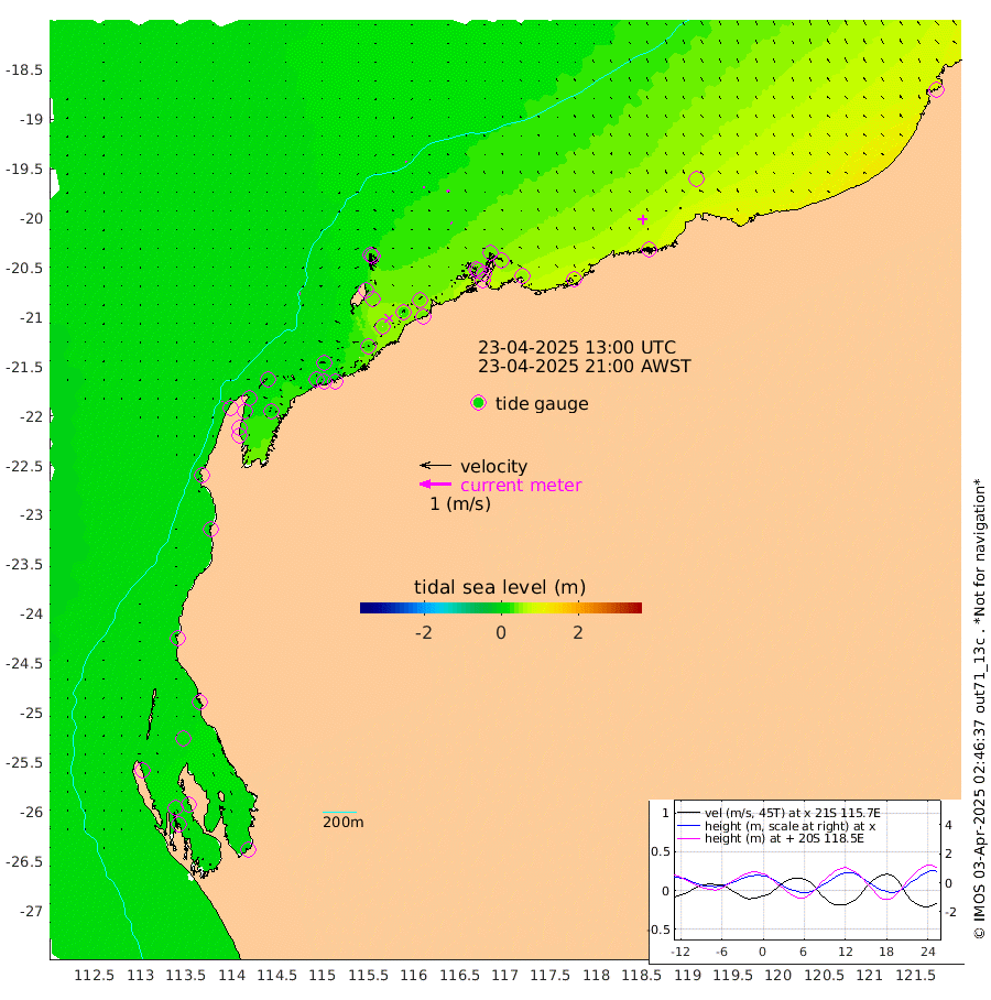 3cm/s -82T +12cm/s rms + 5cm/s -173T. NWSBAR 206m 3cm/s -142T +22cm/s rms + 10cm/s -148T. TAN100 109m 3cm/s -62T +11cm/s rms + 8cm/s -129T. PIL200 208m 4cm/s -38T +13cm/s rms + 7cm/s -137T. PIL100 105m 5cm/s -29T +12cm/s rms + 2cm/s -92T. PIL050 55m 3cm/s -129T +18cm/s rms + 4cm/s -149T. NRSNIN 61m 10cm/s -40T +6cm/s rms + 3cm/s 112T. NW Shelf M6 65m 12cm Withnell Point 18cm Denham 17cm Shark Bay (Inr Bn) 17cm Shark Bay 17cm Useless Loop -1cm Hamelin Pool 12cm Carnarvon 3cm Cape Cuvier 4cm Coral Bay 5cm Norwegian Bay 23cm Badjirrajirra 8cm Tantabiddi 16cm Point Murat 21cm Exmouth 26cm Learmonth 18cm Y Island 12cm North Muiron Island 16cm Roller 17cm Ashburton North 19cm Onslow (Beadon Creek) 18cm Thevenard Island 33cm Large Island 41cm North Sandy Island 29cm Barrow Island (Wapet Landing) 42cm Barrow Island (Tanker Mooring) 42cm Withnell Bay 25cm Trimouille Island 27cm North West Island 41cm Fortescue Road 40cm Steamboat Island 33cm Sholl Island 40cm Fairway Beacon 41cm Mawby Island 42cm Dampier (King Bay) 41cm Cape Legendre 51cm Hauy Island 55cm Port Walcott (Cape Lambert) 75cm Depuch Island 68cm Port Hedland 58cm Bedout Island 85cm Lagrange Bay