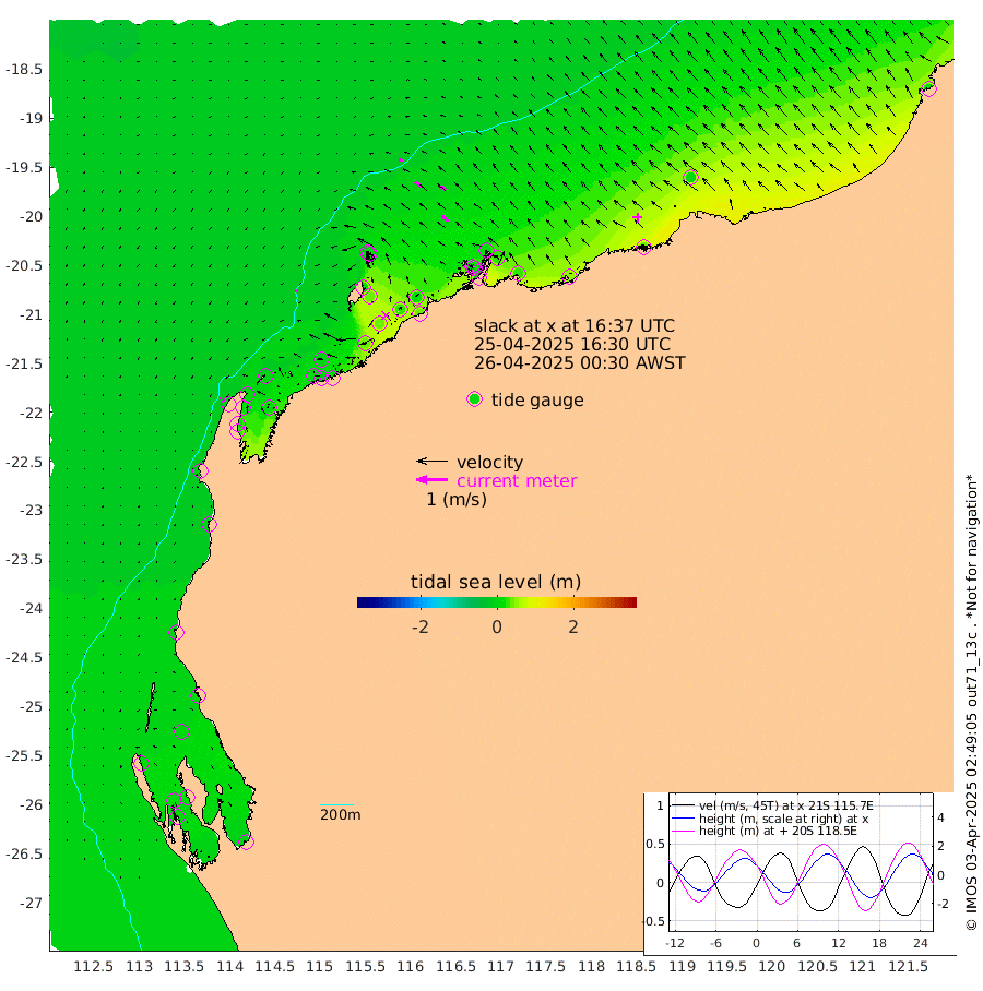 9cm/s -110T +12cm/s rms + 5cm/s -173T. NWSBAR 206m 7cm/s -136T +22cm/s rms + 10cm/s -148T. TAN100 109m 13cm/s -68T +11cm/s rms + 8cm/s -129T. PIL200 208m 22cm/s -51T +13cm/s rms + 7cm/s -137T. PIL100 105m 26cm/s -47T +12cm/s rms + 2cm/s -92T. PIL050 55m 8cm/s -131T +18cm/s rms + 4cm/s -149T. NRSNIN 61m 21cm/s -49T +6cm/s rms + 3cm/s 112T. NW Shelf M6 65m 7cm Withnell Point 14cm Denham 13cm Shark Bay (Inr Bn) 10cm Shark Bay 10cm Useless Loop -2cm Hamelin Pool 2cm Carnarvon -10cm Cape Cuvier -11cm Coral Bay -11cm Norwegian Bay 16cm Badjirrajirra -8cm Tantabiddi 6cm Point Murat 13cm Exmouth 23cm Learmonth 3cm Y Island -3cm North Muiron Island 1cm Roller -2cm Ashburton North 3cm Onslow (Beadon Creek) -1cm Thevenard Island 42cm Large Island 43cm North Sandy Island 13cm Barrow Island (Wapet Landing) 43cm Barrow Island (Tanker Mooring) 12cm Withnell Bay 19cm Trimouille Island 9cm North West Island 35cm Fortescue Road 22cm Steamboat Island 33cm Sholl Island 14cm Fairway Beacon 13cm Mawby Island 13cm Dampier (King Bay) 4cm Cape Legendre 31cm Hauy Island 28cm Port Walcott (Cape Lambert) 50cm Depuch Island 35cm Port Hedland 4cm Bedout Island 19cm Lagrange Bay