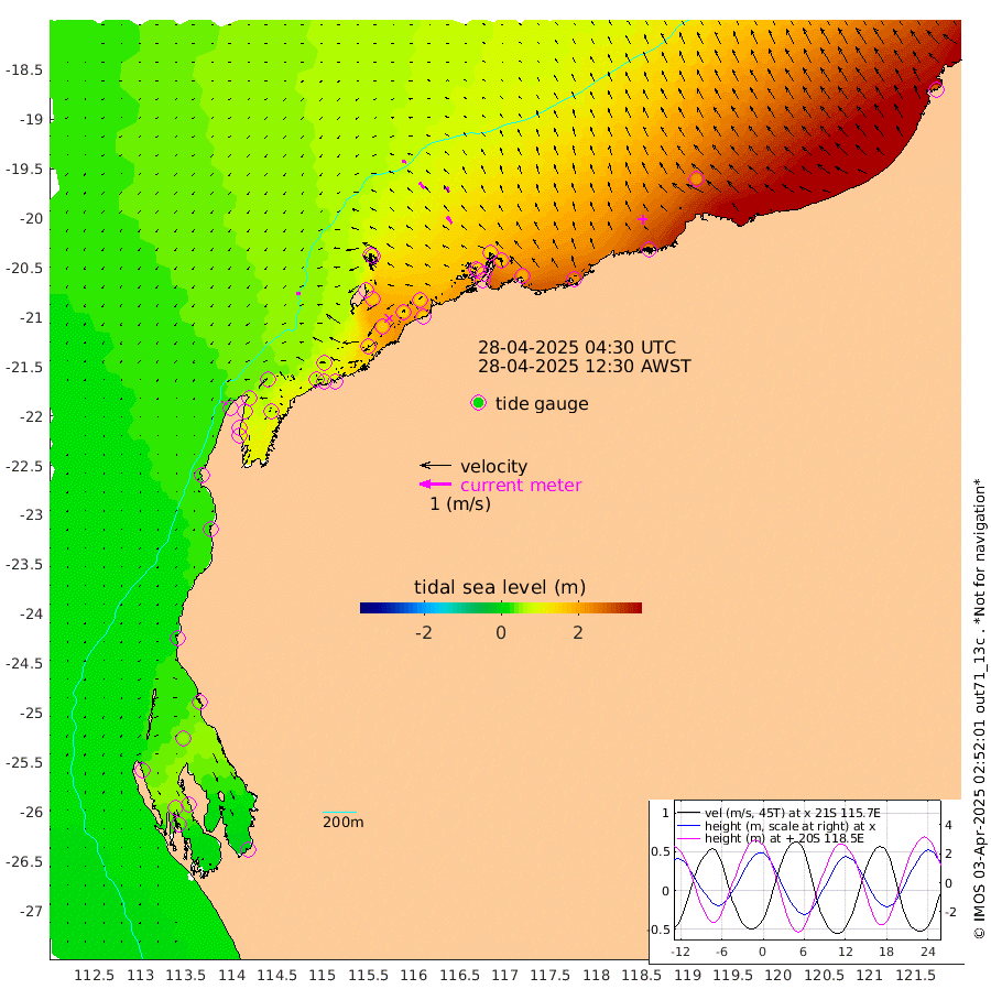 12cm/s -94T +12cm/s rms + 5cm/s -173T. NWSBAR 206m 7cm/s -136T +22cm/s rms + 10cm/s -148T. TAN100 109m 13cm/s -72T +11cm/s rms + 8cm/s -129T. PIL200 208m 23cm/s -44T +13cm/s rms + 7cm/s -137T. PIL100 105m 27cm/s -37T +12cm/s rms + 2cm/s -92T. PIL050 55m 7cm/s -128T +18cm/s rms + 4cm/s -149T. NRSNIN 61m 19cm/s -29T +6cm/s rms + 3cm/s 112T. NW Shelf M6 65m 39cm Withnell Point 49cm Denham 46cm Shark Bay (Inr Bn) 48cm Shark Bay 41cm Useless Loop -5cm Hamelin Pool 45cm Carnarvon 21cm Cape Cuvier 23cm Coral Bay 26cm Norwegian Bay 101cm Badjirrajirra 33cm Tantabiddi 69cm Point Murat 88cm Exmouth 99cm Learmonth 77cm Y Island 52cm North Muiron Island 64cm Roller 67cm Ashburton North 79cm Onslow (Beadon Creek) 70cm Thevenard Island 138cm Large Island 167cm North Sandy Island 112cm Barrow Island (Wapet Landing) 168cm Barrow Island (Tanker Mooring) 149cm Withnell Bay 110cm Trimouille Island 84cm North West Island 159cm Fortescue Road 154cm Steamboat Island 155cm Sholl Island 148cm Fairway Beacon 145cm Mawby Island 149cm Dampier (King Bay) 146cm Cape Legendre 177cm Hauy Island 196cm Port Walcott (Cape Lambert) 228cm Depuch Island 241cm Port Hedland 223cm Bedout Island 274cm Lagrange Bay