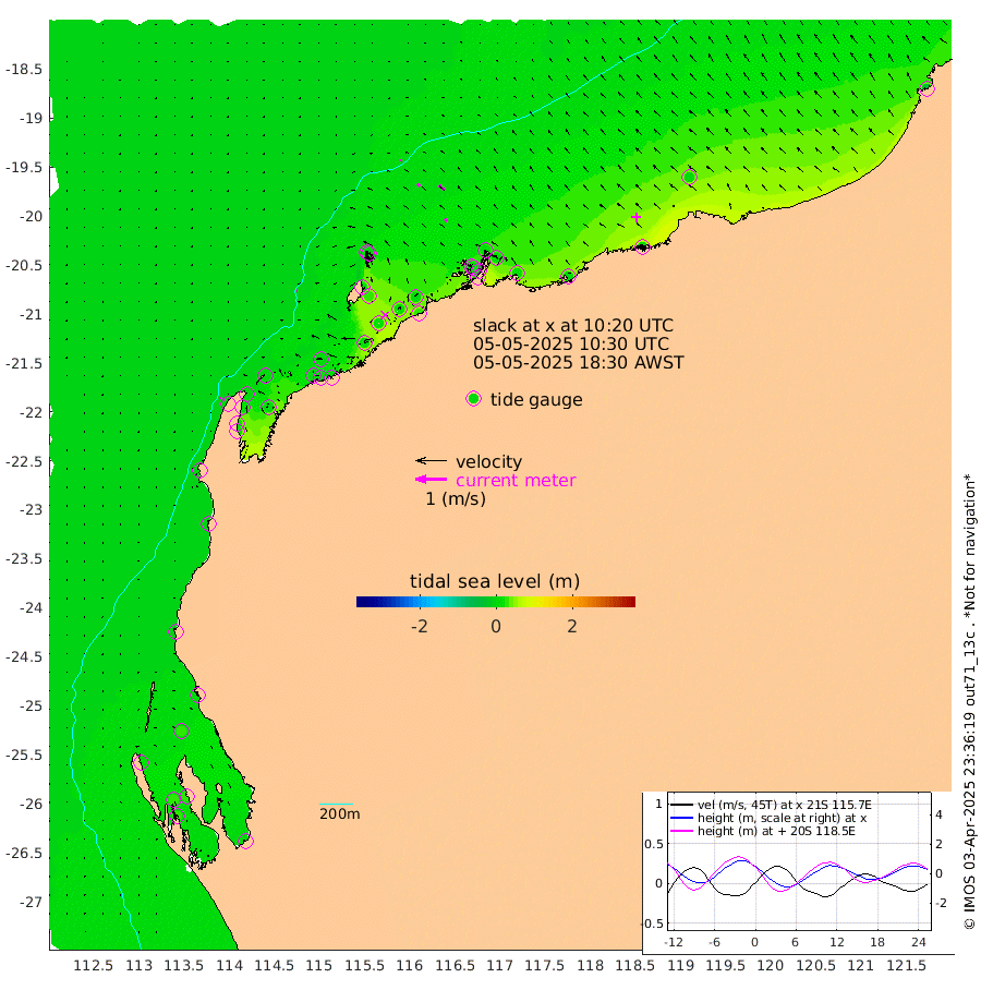 2cm/s -101T +12cm/s rms + 5cm/s -173T. NWSBAR 206m 6cm/s -141T +22cm/s rms + 10cm/s -148T. TAN100 109m 6cm/s -72T +11cm/s rms + 8cm/s -129T. PIL200 208m 11cm/s -48T +13cm/s rms + 7cm/s -137T. PIL100 105m 12cm/s -44T +12cm/s rms + 2cm/s -92T. PIL050 55m 5cm/s -131T +18cm/s rms + 4cm/s -149T. NRSNIN 61m 25cm/s -51T +6cm/s rms + 3cm/s 112T. NW Shelf M6 65m 13cm Withnell Point 24cm Denham 24cm Shark Bay (Inr Bn) 23cm Shark Bay 24cm Useless Loop 2cm Hamelin Pool 10cm Carnarvon 0cm Cape Cuvier -1cm Coral Bay 1cm Norwegian Bay 19cm Badjirrajirra 0cm Tantabiddi 10cm Point Murat 15cm Exmouth 19cm Learmonth 8cm Y Island 2cm North Muiron Island 1cm Roller 5cm Ashburton North 8cm Onslow (Beadon Creek) 6cm Thevenard Island 21cm Large Island 21cm North Sandy Island 15cm Barrow Island (Wapet Landing) 26cm Barrow Island (Tanker Mooring) 13cm Withnell Bay 8cm Trimouille Island 8cm North West Island 23cm Fortescue Road 5cm Steamboat Island 22cm Sholl Island 12cm Fairway Beacon 13cm Mawby Island 13cm Dampier (King Bay) 19cm Cape Legendre 20cm Hauy Island 19cm Port Walcott (Cape Lambert) 10cm Depuch Island 21cm Port Hedland 8cm Bedout Island -38cm Lagrange Bay