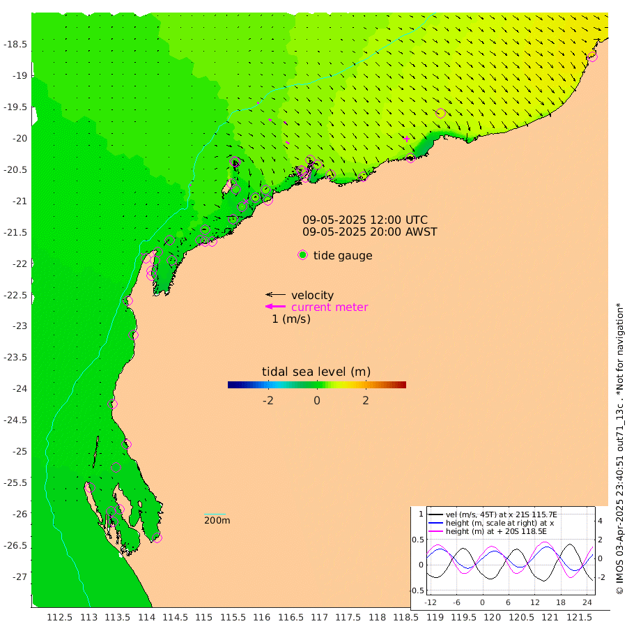 6cm/s 38T +12cm/s rms + 5cm/s -173T. NWSBAR 206m 4cm/s 54T +22cm/s rms + 10cm/s -148T. TAN100 109m 10cm/s 107T +11cm/s rms + 8cm/s -129T. PIL200 208m 16cm/s 125T +13cm/s rms + 7cm/s -137T. PIL100 105m 19cm/s 128T +12cm/s rms + 2cm/s -92T. PIL050 55m 4cm/s 48T +18cm/s rms + 4cm/s -149T. NRSNIN 61m 12cm/s 130T +6cm/s rms + 3cm/s 112T. NW Shelf M6 65m -7cm Withnell Point -17cm Denham -17cm Shark Bay (Inr Bn) -14cm Shark Bay -18cm Useless Loop -6cm Hamelin Pool 3cm Carnarvon 8cm Cape Cuvier 10cm Coral Bay 12cm Norwegian Bay 16cm Badjirrajirra 13cm Tantabiddi 13cm Point Murat 14cm Exmouth 18cm Learmonth 20cm Y Island 16cm North Muiron Island 20cm Roller 23cm Ashburton North 22cm Onslow (Beadon Creek) 25cm Thevenard Island 25cm Large Island 30cm North Sandy Island 31cm Barrow Island (Wapet Landing) 26cm Barrow Island (Tanker Mooring) 55cm Withnell Bay 26cm Trimouille Island 27cm North West Island 40cm Fortescue Road 41cm Steamboat Island 41cm Sholl Island 51cm Fairway Beacon 52cm Mawby Island 55cm Dampier (King Bay) 54cm Cape Legendre 54cm Hauy Island 64cm Port Walcott (Cape Lambert) 66cm Depuch Island 84cm Port Hedland 94cm Bedout Island 144cm Lagrange Bay