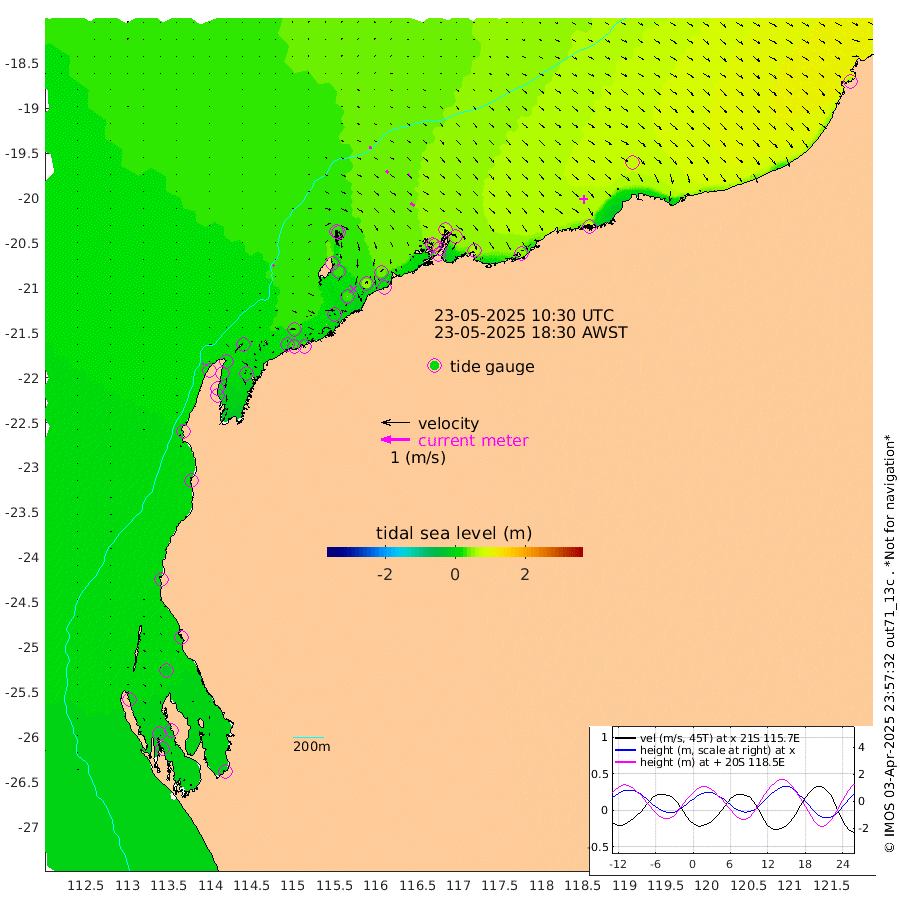 6cm/s 35T +12cm/s rms + 5cm/s -173T. NWSBAR 206m 3cm/s 55T +22cm/s rms + 10cm/s -148T. TAN100 109m 9cm/s 105T +11cm/s rms + 8cm/s -129T. PIL200 208m 13cm/s 125T +13cm/s rms + 7cm/s -137T. PIL100 105m 15cm/s 128T +12cm/s rms + 2cm/s -92T. PIL050 55m 3cm/s 47T +18cm/s rms + 4cm/s -149T. NRSNIN 61m 6cm/s 109T +6cm/s rms + 3cm/s 112T. NW Shelf M6 65m -4cm Withnell Point -15cm Denham -15cm Shark Bay (Inr Bn) -12cm Shark Bay -18cm Useless Loop -7cm Hamelin Pool 7cm Carnarvon 10cm Cape Cuvier 11cm Coral Bay 13cm Norwegian Bay 21cm Badjirrajirra 14cm Tantabiddi 16cm Point Murat 18cm Exmouth 20cm Learmonth 22cm Y Island 16cm North Muiron Island 20cm Roller 23cm Ashburton North 24cm Onslow (Beadon Creek) 24cm Thevenard Island 0cm Large Island 29cm North Sandy Island 31cm Barrow Island (Wapet Landing) 27cm Barrow Island (Tanker Mooring) 51cm Withnell Bay 19cm Trimouille Island 27cm North West Island 12cm Fortescue Road 44cm Steamboat Island 46cm Sholl Island 49cm Fairway Beacon 54cm Mawby Island 51cm Dampier (King Bay) 57cm Cape Legendre 53cm Hauy Island 59cm Port Walcott (Cape Lambert) 53cm Depuch Island 76cm Port Hedland 79cm Bedout Island 63cm Lagrange Bay