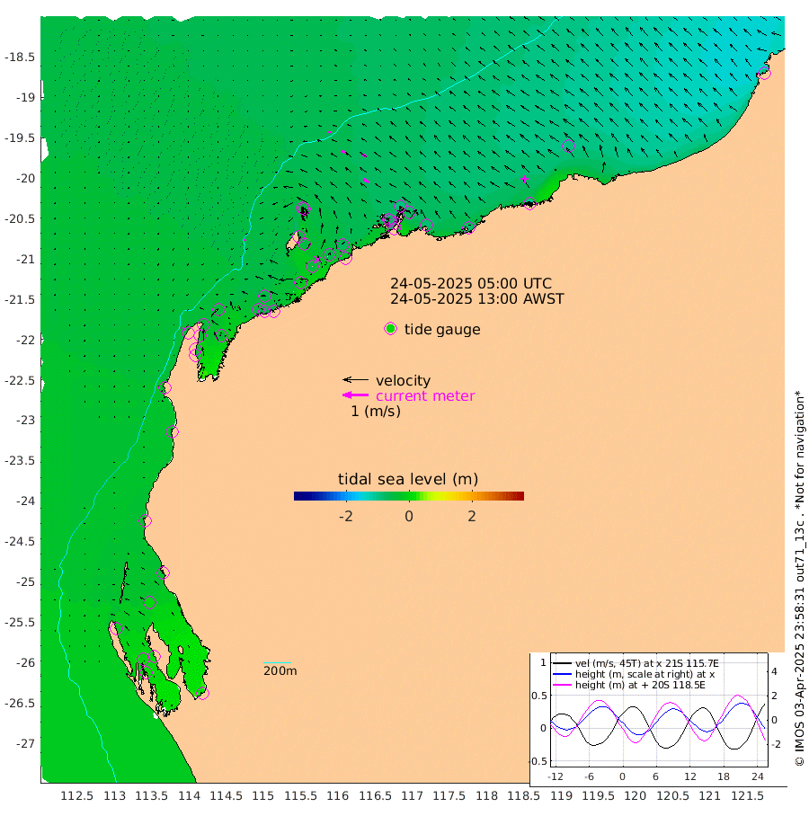 6cm/s -150T +12cm/s rms + 5cm/s -173T. NWSBAR 206m 7cm/s -136T +22cm/s rms + 10cm/s -148T. TAN100 109m 12cm/s -79T +11cm/s rms + 8cm/s -129T. PIL200 208m 21cm/s -60T +13cm/s rms + 7cm/s -137T. PIL100 105m 24cm/s -57T +12cm/s rms + 2cm/s -92T. PIL050 55m 7cm/s -132T +18cm/s rms + 4cm/s -149T. NRSNIN 61m 17cm/s -60T +6cm/s rms + 3cm/s 112T. NW Shelf M6 65m -13cm Withnell Point 9cm Denham 9cm Shark Bay (Inr Bn) 10cm Shark Bay 19cm Useless Loop 17cm Hamelin Pool -31cm Carnarvon -34cm Cape Cuvier -35cm Coral Bay -40cm Norwegian Bay -43cm Badjirrajirra -38cm Tantabiddi -38cm Point Murat -39cm Exmouth -46cm Learmonth -43cm Y Island -40cm North Muiron Island -45cm Roller -48cm Ashburton North -48cm Onslow (Beadon Creek) -49cm Thevenard Island -11cm Large Island -51cm North Sandy Island -56cm Barrow Island (Wapet Landing) -48cm Barrow Island (Tanker Mooring) -81cm Withnell Bay -54cm Trimouille Island -50cm North West Island -16cm Fortescue Road -74cm Steamboat Island -63cm Sholl Island -78cm Fairway Beacon -82cm Mawby Island -80cm Dampier (King Bay) -93cm Cape Legendre -77cm Hauy Island -89cm Port Walcott (Cape Lambert) -90cm Depuch Island -106cm Port Hedland -96cm Bedout Island -100cm Lagrange Bay