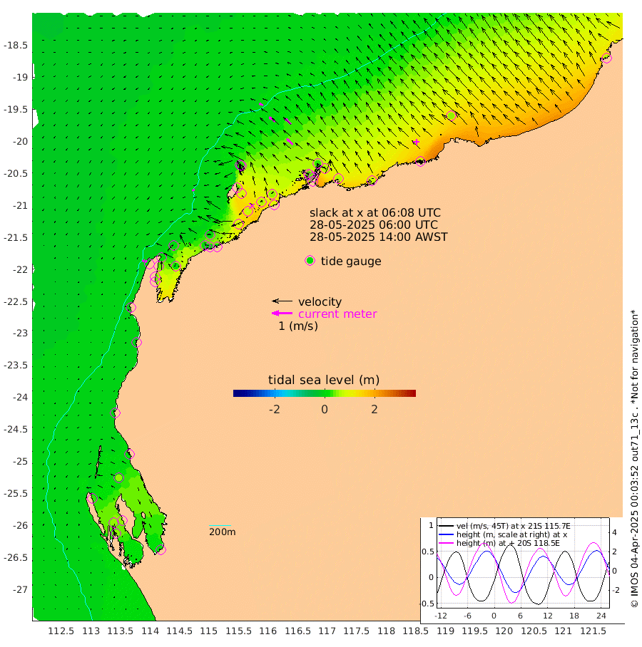12cm/s -112T +12cm/s rms + 5cm/s -173T. NWSBAR 206m 13cm/s -136T +22cm/s rms + 10cm/s -148T. TAN100 109m 20cm/s -73T +11cm/s rms + 8cm/s -129T. PIL200 208m 36cm/s -51T +13cm/s rms + 7cm/s -137T. PIL100 105m 42cm/s -46T +12cm/s rms + 2cm/s -92T. PIL050 55m 14cm/s -131T +18cm/s rms + 4cm/s -149T. NRSNIN 61m 40cm/s -44T +6cm/s rms + 3cm/s 112T. NW Shelf M6 65m 25cm Withnell Point 53cm Denham 52cm Shark Bay (Inr Bn) 50cm Shark Bay 56cm Useless Loop 11cm Hamelin Pool 14cm Carnarvon -10cm Cape Cuvier -10cm Coral Bay -9cm Norwegian Bay 44cm Badjirrajirra -6cm Tantabiddi 22cm Point Murat 36cm Exmouth 40cm Learmonth 22cm Y Island 6cm North Muiron Island 8cm Roller 9cm Ashburton North 19cm Onslow (Beadon Creek) 11cm Thevenard Island 88cm Large Island 71cm North Sandy Island 35cm Barrow Island (Wapet Landing) 82cm Barrow Island (Tanker Mooring) 36cm Withnell Bay 31cm Trimouille Island 21cm North West Island 94cm Fortescue Road 47cm Steamboat Island 59cm Sholl Island 38cm Fairway Beacon 35cm Mawby Island 37cm Dampier (King Bay) 31cm Cape Legendre 61cm Hauy Island 60cm Port Walcott (Cape Lambert) 77cm Depuch Island 74cm Port Hedland 52cm Bedout Island 62cm Lagrange Bay