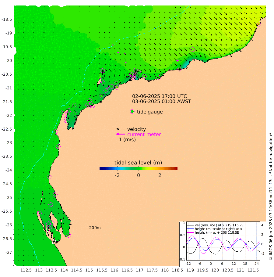4cm/s 56T +12cm/s rms + 5cm/s -173T. NWSBAR 206m 6cm/s 40T +22cm/s rms + 10cm/s -148T. TAN100 109m 11cm/s 106T +11cm/s rms + 8cm/s -129T. PIL200 208m 18cm/s 125T +13cm/s rms + 7cm/s -137T. PIL100 105m 21cm/s 129T +12cm/s rms + 2cm/s -92T. PIL050 55m 6cm/s 49T +18cm/s rms + 4cm/s -149T. NRSNIN 61m 27cm/s 120T +6cm/s rms + 3cm/s 112T. NW Shelf M6 65m -18cm Withnell Point -31cm Denham -28cm Shark Bay (Inr Bn) -35cm Shark Bay -30cm Useless Loop 0cm Hamelin Pool -10cm Carnarvon 2cm Cape Cuvier 4cm Coral Bay 5cm Norwegian Bay -3cm Badjirrajirra 5cm Tantabiddi -2cm Point Murat -3cm Exmouth 4cm Learmonth 5cm Y Island 6cm North Muiron Island 9cm Roller 8cm Ashburton North 7cm Onslow (Beadon Creek) 7cm Thevenard Island 25cm Large Island 3cm North Sandy Island 8cm Barrow Island (Wapet Landing) -2cm Barrow Island (Tanker Mooring) 23cm Withnell Bay 11cm Trimouille Island 8cm North West Island 35cm Fortescue Road 17cm Steamboat Island 9cm Sholl Island 22cm Fairway Beacon 26cm Mawby Island 24cm Dampier (King Bay) 21cm Cape Legendre 17cm Hauy Island 27cm Port Walcott (Cape Lambert) 32cm Depuch Island 39cm Port Hedland 42cm Bedout Island 183cm Lagrange Bay