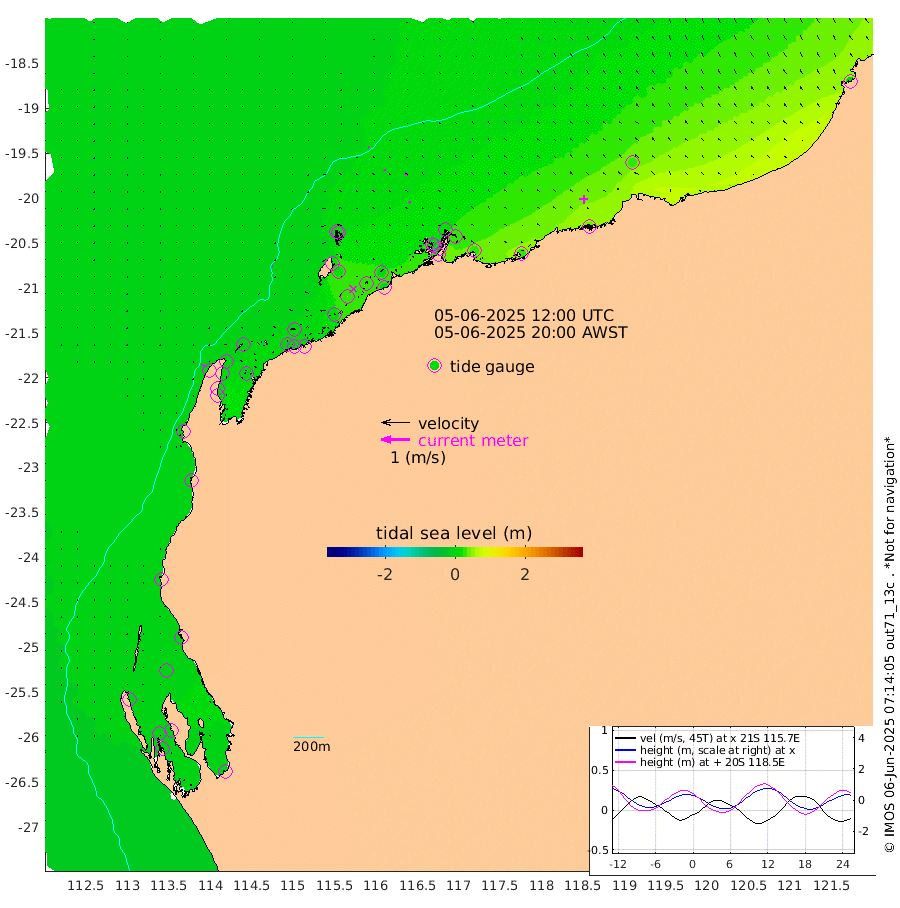3cm/s -67T +12cm/s rms + 5cm/s -173T. NWSBAR 206m 4cm/s -151T +22cm/s rms + 10cm/s -148T. TAN100 109m 3cm/s -66T +11cm/s rms + 8cm/s -129T. PIL200 208m 5cm/s -44T +13cm/s rms + 7cm/s -137T. PIL100 105m 6cm/s -44T +12cm/s rms + 2cm/s -92T. PIL050 55m 3cm/s -135T +18cm/s rms + 4cm/s -149T. NRSNIN 61m 11cm/s -69T +6cm/s rms + 3cm/s 112T. NW Shelf M6 65m -6cm Withnell Point -8cm Denham -7cm Shark Bay (Inr Bn) -7cm Shark Bay -10cm Useless Loop -4cm Hamelin Pool -5cm Carnarvon -9cm Cape Cuvier -9cm Coral Bay -7cm Norwegian Bay 7cm Badjirrajirra -6cm Tantabiddi 1cm Point Murat 5cm Exmouth 12cm Learmonth -1cm Y Island -5cm North Muiron Island -2cm Roller 1cm Ashburton North 2cm Onslow (Beadon Creek) 2cm Thevenard Island 7cm Large Island 23cm North Sandy Island 12cm Barrow Island (Wapet Landing) 22cm Barrow Island (Tanker Mooring) 19cm Withnell Bay 15cm Trimouille Island 5cm North West Island 10cm Fortescue Road 11cm Steamboat Island 29cm Sholl Island 18cm Fairway Beacon 17cm Mawby Island 20cm Dampier (King Bay) 22cm Cape Legendre 29cm Hauy Island 30cm Port Walcott (Cape Lambert) 29cm Depuch Island 40cm Port Hedland 29cm Bedout Island 0cm Lagrange Bay