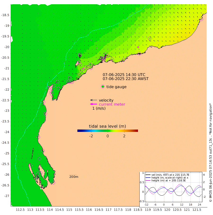 5cm/s -83T +12cm/s rms + 5cm/s -173T. NWSBAR 206m 2cm/s -151T +22cm/s rms + 10cm/s -148T. TAN100 109m 4cm/s -67T +11cm/s rms + 8cm/s -129T. PIL200 208m 7cm/s -44T +13cm/s rms + 7cm/s -137T. PIL100 105m 8cm/s -41T +12cm/s rms + 2cm/s -92T. PIL050 55m 2cm/s -128T +18cm/s rms + 4cm/s -149T. NRSNIN 61m 4cm/s -82T +6cm/s rms + 3cm/s 112T. NW Shelf M6 65m -7cm Withnell Point -14cm Denham -15cm Shark Bay (Inr Bn) -15cm Shark Bay -20cm Useless Loop -9cm Hamelin Pool -2cm Carnarvon -5cm Cape Cuvier -5cm Coral Bay -4cm Norwegian Bay 14cm Badjirrajirra -2cm Tantabiddi 6cm Point Murat 11cm Exmouth 22cm Learmonth 4cm Y Island 0cm North Muiron Island 4cm Roller 7cm Ashburton North 9cm Onslow (Beadon Creek) 8cm Thevenard Island 39cm Large Island 41cm North Sandy Island 21cm Barrow Island (Wapet Landing) 39cm Barrow Island (Tanker Mooring) 32cm Withnell Bay 31cm Trimouille Island 14cm North West Island 42cm Fortescue Road 30cm Steamboat Island 40cm Sholl Island 32cm Fairway Beacon 30cm Mawby Island 34cm Dampier (King Bay) 33cm Cape Legendre 46cm Hauy Island 49cm Port Walcott (Cape Lambert) 59cm Depuch Island 63cm Port Hedland 46cm Bedout Island 89cm Lagrange Bay