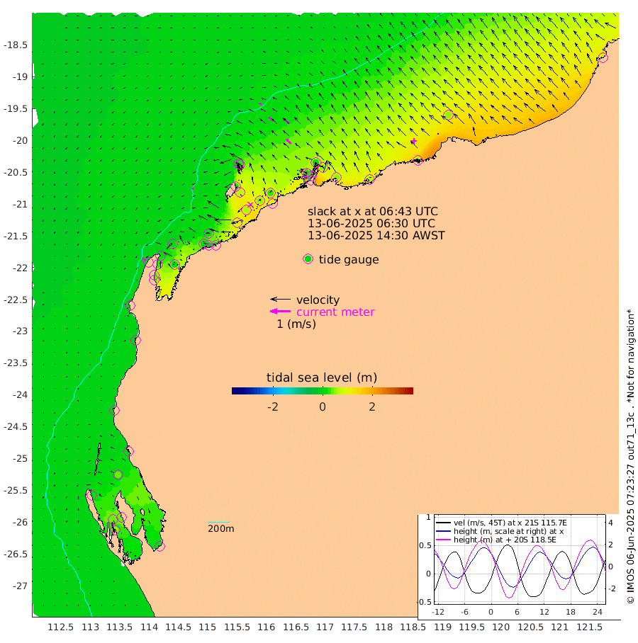 8cm/s -110T +12cm/s rms + 5cm/s -173T. NWSBAR 206m 12cm/s -137T +22cm/s rms + 10cm/s -148T. TAN100 109m 15cm/s -73T +11cm/s rms + 8cm/s -129T. PIL200 208m 28cm/s -51T +13cm/s rms + 7cm/s -137T. PIL100 105m 32cm/s -46T +12cm/s rms + 2cm/s -92T. PIL050 55m 11cm/s -132T +18cm/s rms + 4cm/s -149T. NRSNIN 61m 38cm/s -49T +6cm/s rms + 3cm/s 112T. NW Shelf M6 65m 19cm Withnell Point 43cm Denham 43cm Shark Bay (Inr Bn) 43cm Shark Bay 47cm Useless Loop 10cm Hamelin Pool 9cm Carnarvon -10cm Cape Cuvier -9cm Coral Bay -9cm Norwegian Bay 35cm Badjirrajirra -5cm Tantabiddi 17cm Point Murat 29cm Exmouth 35cm Learmonth 19cm Y Island 5cm North Muiron Island 6cm Roller 9cm Ashburton North 15cm Onslow (Beadon Creek) 10cm Thevenard Island 102cm Large Island 61cm North Sandy Island 30cm Barrow Island (Wapet Landing) 68cm Barrow Island (Tanker Mooring) 32cm Withnell Bay 29cm Trimouille Island 16cm North West Island 108cm Fortescue Road 30cm Steamboat Island 55cm Sholl Island 33cm Fairway Beacon 28cm Mawby Island 33cm Dampier (King Bay) 22cm Cape Legendre 50cm Hauy Island 53cm Port Walcott (Cape Lambert) 62cm Depuch Island 66cm Port Hedland 53cm Bedout Island 87cm Lagrange Bay