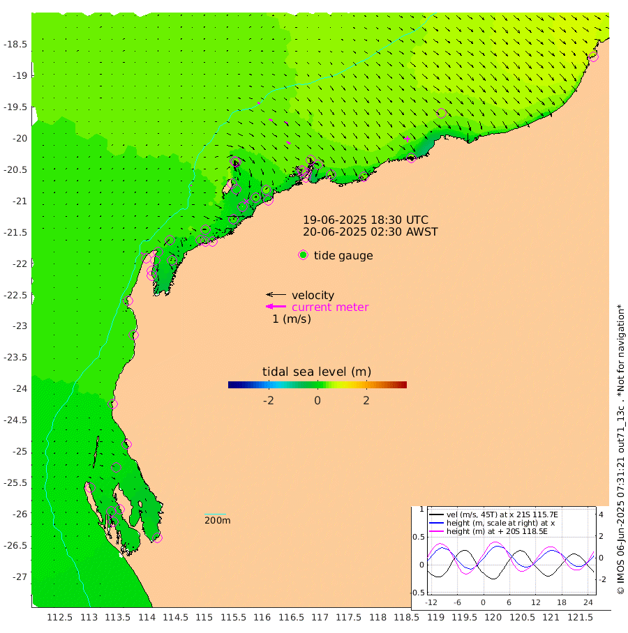 5cm/s 70T +12cm/s rms + 5cm/s -173T. NWSBAR 206m 7cm/s 39T +22cm/s rms + 10cm/s -148T. TAN100 109m 11cm/s 105T +11cm/s rms + 8cm/s -129T. PIL200 208m 18cm/s 122T +13cm/s rms + 7cm/s -137T. PIL100 105m 21cm/s 125T +12cm/s rms + 2cm/s -92T. PIL050 55m 7cm/s 48T +18cm/s rms + 4cm/s -149T. NRSNIN 61m 16cm/s 123T +6cm/s rms + 3cm/s 112T. NW Shelf M6 65m 5cm Withnell Point -8cm Denham -6cm Shark Bay (Inr Bn) -11cm Shark Bay -11cm Useless Loop -5cm Hamelin Pool 17cm Carnarvon 24cm Cape Cuvier 25cm Coral Bay 27cm Norwegian Bay 22cm Badjirrajirra 26cm Tantabiddi 21cm Point Murat 20cm Exmouth 23cm Learmonth 26cm Y Island 27cm North Muiron Island 26cm Roller 29cm Ashburton North 29cm Onslow (Beadon Creek) 29cm Thevenard Island 25cm Large Island 20cm North Sandy Island 29cm Barrow Island (Wapet Landing) 18cm Barrow Island (Tanker Mooring) 43cm Withnell Bay 37cm Trimouille Island 26cm North West Island 21cm Fortescue Road 42cm Steamboat Island 32cm Sholl Island 41cm Fairway Beacon 43cm Mawby Island 43cm Dampier (King Bay) 47cm Cape Legendre 33cm Hauy Island 44cm Port Walcott (Cape Lambert) 40cm Depuch Island 53cm Port Hedland 56cm Bedout Island 77cm Lagrange Bay