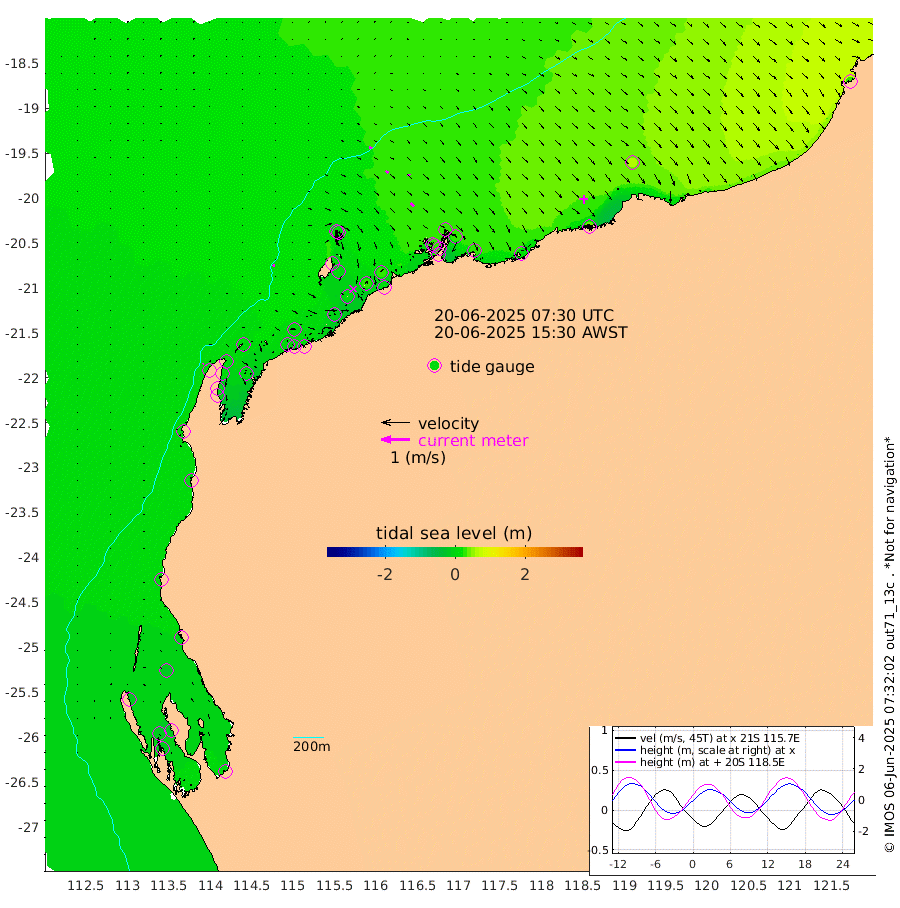 7cm/s 58T +12cm/s rms + 5cm/s -173T. NWSBAR 206m 3cm/s 48T +22cm/s rms + 10cm/s -148T. TAN100 109m 10cm/s 107T +11cm/s rms + 8cm/s -129T. PIL200 208m 14cm/s 130T +13cm/s rms + 7cm/s -137T. PIL100 105m 15cm/s 134T +12cm/s rms + 2cm/s -92T. PIL050 55m 3cm/s 53T +18cm/s rms + 4cm/s -149T. NRSNIN 61m 7cm/s 121T +6cm/s rms + 3cm/s 112T. NW Shelf M6 65m -13cm Withnell Point -20cm Denham -18cm Shark Bay (Inr Bn) -15cm Shark Bay -18cm Useless Loop 2cm Hamelin Pool -6cm Carnarvon 1cm Cape Cuvier 3cm Coral Bay 2cm Norwegian Bay 6cm Badjirrajirra 5cm Tantabiddi 4cm Point Murat 4cm Exmouth 4cm Learmonth 9cm Y Island 6cm North Muiron Island 7cm Roller 10cm Ashburton North 10cm Onslow (Beadon Creek) 11cm Thevenard Island -2cm Large Island 8cm North Sandy Island 14cm Barrow Island (Wapet Landing) 7cm Barrow Island (Tanker Mooring) 28cm Withnell Bay 4cm Trimouille Island 12cm North West Island 3cm Fortescue Road 24cm Steamboat Island 32cm Sholl Island 27cm Fairway Beacon 30cm Mawby Island 28cm Dampier (King Bay) 27cm Cape Legendre 24cm Hauy Island 33cm Port Walcott (Cape Lambert) 17cm Depuch Island 45cm Port Hedland 62cm Bedout Island 27cm Lagrange Bay