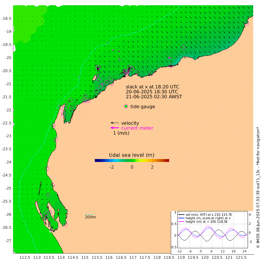 6cm/s 88T +12cm/s rms + 5cm/s -173T. NWSBAR 206m 6cm/s 38T +22cm/s rms + 10cm/s -148T. TAN100 109m 10cm/s 105T +11cm/s rms + 8cm/s -129T. PIL200 208m 16cm/s 124T +13cm/s rms + 7cm/s -137T. PIL100 105m 19cm/s 128T +12cm/s rms + 2cm/s -92T. PIL050 55m 7cm/s 49T +18cm/s rms + 4cm/s -149T. NRSNIN 61m 15cm/s 127T +6cm/s rms + 3cm/s 112T. NW Shelf M6 65m 5cm Withnell Point -5cm Denham -3cm Shark Bay (Inr Bn) -8cm Shark Bay -6cm Useless Loop -3cm Hamelin Pool 11cm Carnarvon 20cm Cape Cuvier 21cm Coral Bay 20cm Norwegian Bay 0cm Badjirrajirra 18cm Tantabiddi 7cm Point Murat 1cm Exmouth 2cm Learmonth 7cm Y Island 14cm North Muiron Island 10cm Roller 11cm Ashburton North 8cm Onslow (Beadon Creek) 10cm Thevenard Island 0cm Large Island -18cm North Sandy Island 1cm Barrow Island (Wapet Landing) -19cm Barrow Island (Tanker Mooring) -1cm Withnell Bay 8cm Trimouille Island 7cm North West Island -14cm Fortescue Road 1cm Steamboat Island -10cm Sholl Island -2cm Fairway Beacon 0cm Mawby Island -1cm Dampier (King Bay) 1cm Cape Legendre -16cm Hauy Island -12cm Port Walcott (Cape Lambert) -20cm Depuch Island -18cm Port Hedland -16cm Bedout Island -14cm Lagrange Bay