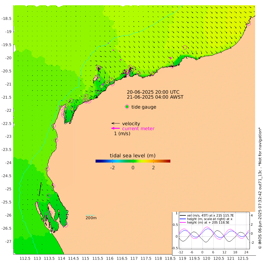 5cm/s 66T +12cm/s rms + 5cm/s -173T. NWSBAR 206m 7cm/s 39T +22cm/s rms + 10cm/s -148T. TAN100 109m 10cm/s 102T +11cm/s rms + 8cm/s -129T. PIL200 208m 16cm/s 120T +13cm/s rms + 7cm/s -137T. PIL100 105m 19cm/s 121T +12cm/s rms + 2cm/s -92T. PIL050 55m 7cm/s 47T +18cm/s rms + 4cm/s -149T. NRSNIN 61m 12cm/s 117T +6cm/s rms + 3cm/s 112T. NW Shelf M6 65m 21cm Withnell Point 8cm Denham 9cm Shark Bay (Inr Bn) 6cm Shark Bay 3cm Useless Loop -9cm Hamelin Pool 34cm Carnarvon 37cm Cape Cuvier 38cm Coral Bay 41cm Norwegian Bay 42cm Badjirrajirra 39cm Tantabiddi 38cm Point Murat 39cm Exmouth 40cm Learmonth 43cm Y Island 41cm North Muiron Island 41cm Roller 45cm Ashburton North 45cm Onslow (Beadon Creek) 45cm Thevenard Island 25cm Large Island 41cm North Sandy Island 48cm Barrow Island (Wapet Landing) 40cm Barrow Island (Tanker Mooring) 63cm Withnell Bay 51cm Trimouille Island 42cm North West Island 22cm Fortescue Road 62cm Steamboat Island 53cm Sholl Island 60cm Fairway Beacon 62cm Mawby Island 62cm Dampier (King Bay) 70cm Cape Legendre 53cm Hauy Island 66cm Port Walcott (Cape Lambert) 61cm Depuch Island 76cm Port Hedland 75cm Bedout Island 50cm Lagrange Bay