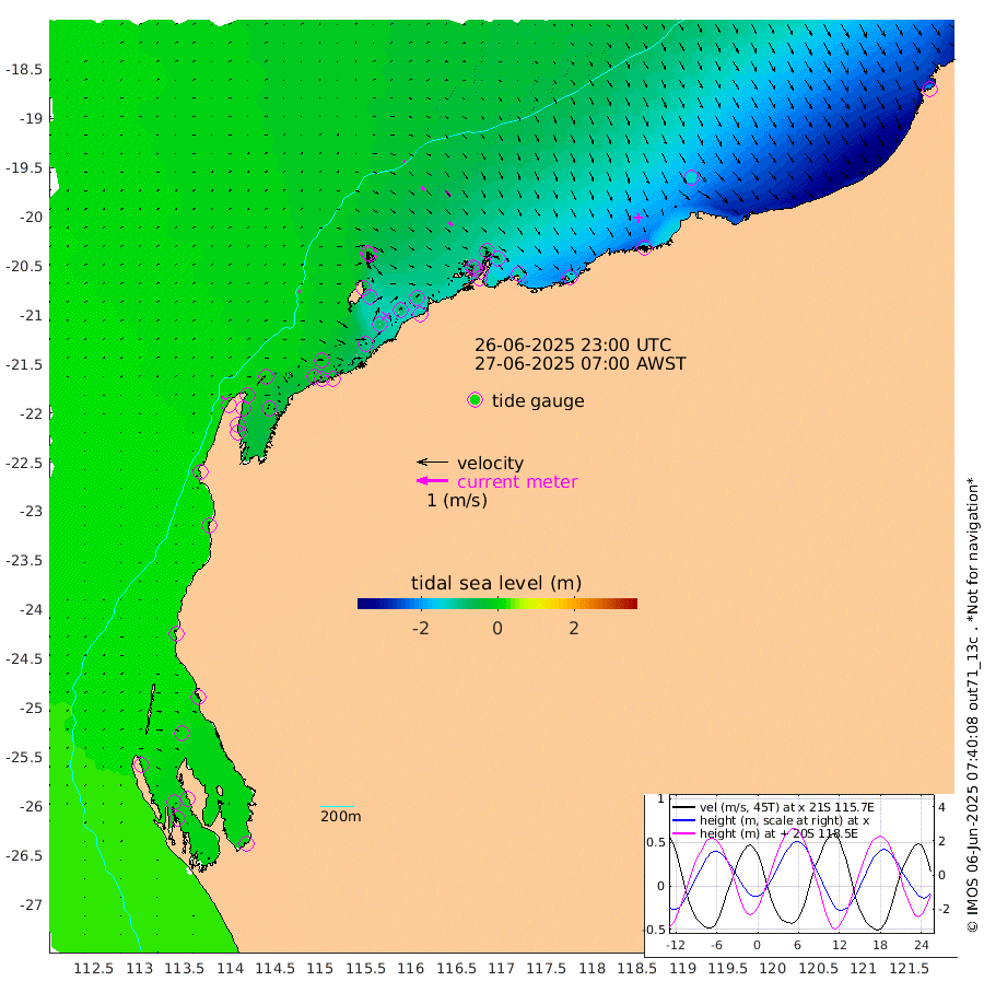 6cm/s 99T +12cm/s rms + 5cm/s -173T. NWSBAR 206m 7cm/s 38T +22cm/s rms + 10cm/s -148T. TAN100 109m 6cm/s 106T +11cm/s rms + 8cm/s -129T. PIL200 208m 14cm/s 135T +13cm/s rms + 7cm/s -137T. PIL100 105m 17cm/s 140T +12cm/s rms + 2cm/s -92T. PIL050 55m 7cm/s 48T +18cm/s rms + 4cm/s -149T. NRSNIN 61m 20cm/s 142T +6cm/s rms + 3cm/s 112T. NW Shelf M6 65m 11cm Withnell Point 6cm Denham 5cm Shark Bay (Inr Bn) 11cm Shark Bay 7cm Useless Loop -3cm Hamelin Pool 8cm Carnarvon 19cm Cape Cuvier 18cm Coral Bay 14cm Norwegian Bay -41cm Badjirrajirra 9cm Tantabiddi -16cm Point Murat -30cm Exmouth -46cm Learmonth -21cm Y Island -4cm North Muiron Island -11cm Roller -17cm Ashburton North -26cm Onslow (Beadon Creek) -18cm Thevenard Island -93cm Large Island -88cm North Sandy Island -52cm Barrow Island (Wapet Landing) -91cm Barrow Island (Tanker Mooring) -83cm Withnell Bay -52cm Trimouille Island -31cm North West Island -116cm Fortescue Road -82cm Steamboat Island -97cm Sholl Island -83cm Fairway Beacon -82cm Mawby Island -84cm Dampier (King Bay) -81cm Cape Legendre -109cm Hauy Island -121cm Port Walcott (Cape Lambert) -140cm Depuch Island -160cm Port Hedland -143cm Bedout Island -216cm Lagrange Bay