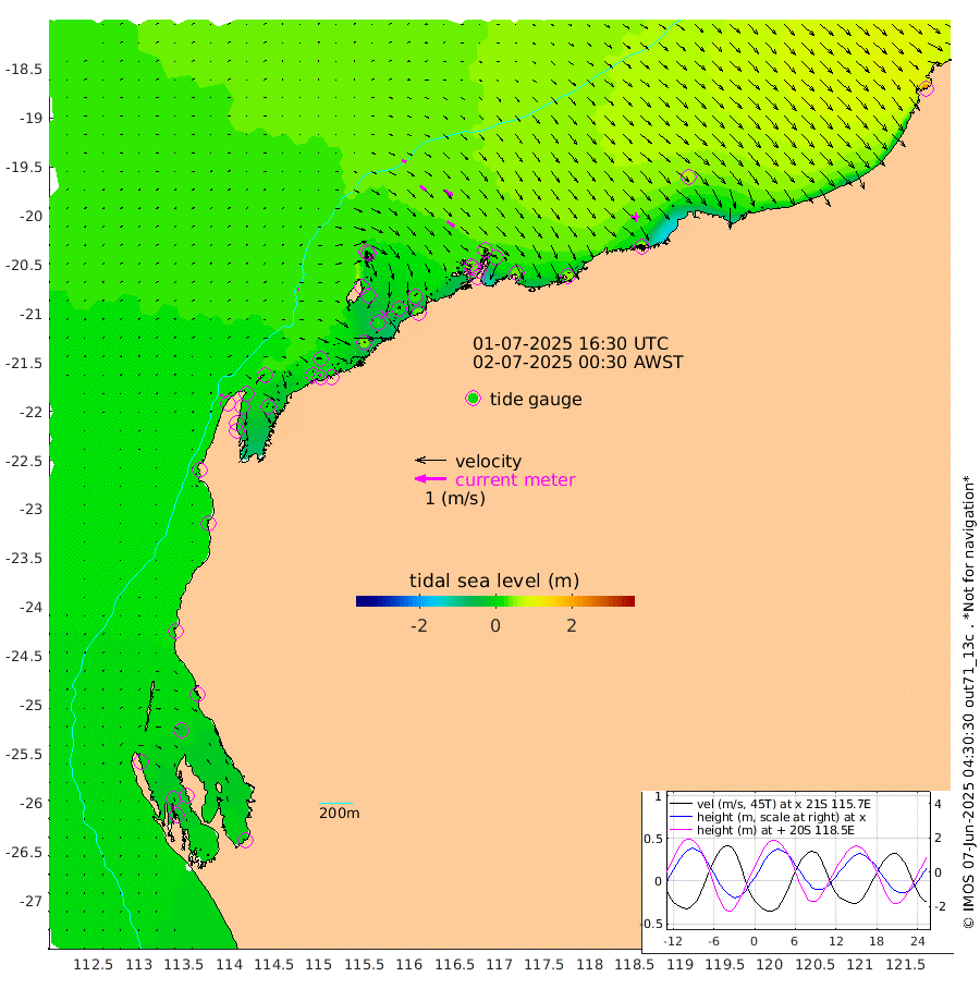 6cm/s 63T +12cm/s rms + 5cm/s -173T. NWSBAR 206m 8cm/s 39T +22cm/s rms + 10cm/s -148T. TAN100 109m 14cm/s 108T +11cm/s rms + 8cm/s -129T. PIL200 208m 23cm/s 125T +13cm/s rms + 7cm/s -137T. PIL100 105m 28cm/s 128T +12cm/s rms + 2cm/s -92T. PIL050 55m 8cm/s 47T +18cm/s rms + 4cm/s -149T. NRSNIN 61m 30cm/s 120T +6cm/s rms + 3cm/s 112T. NW Shelf M6 65m -9cm Withnell Point -26cm Denham -22cm Shark Bay (Inr Bn) -28cm Shark Bay -27cm Useless Loop -4cm Hamelin Pool 1cm Carnarvon 14cm Cape Cuvier 16cm Coral Bay 16cm Norwegian Bay 4cm Badjirrajirra 16cm Tantabiddi 7cm Point Murat 4cm Exmouth 11cm Learmonth 15cm Y Island 17cm North Muiron Island 20cm Roller 20cm Ashburton North 17cm Onslow (Beadon Creek) 19cm Thevenard Island 35cm Large Island 10cm North Sandy Island 18cm Barrow Island (Wapet Landing) 2cm Barrow Island (Tanker Mooring) 36cm Withnell Bay 19cm Trimouille Island 19cm North West Island 43cm Fortescue Road 26cm Steamboat Island 11cm Sholl Island 34cm Fairway Beacon 40cm Mawby Island 36cm Dampier (King Bay) 36cm Cape Legendre 26cm Hauy Island 38cm Port Walcott (Cape Lambert) 45cm Depuch Island 51cm Port Hedland 57cm Bedout Island 208cm Lagrange Bay