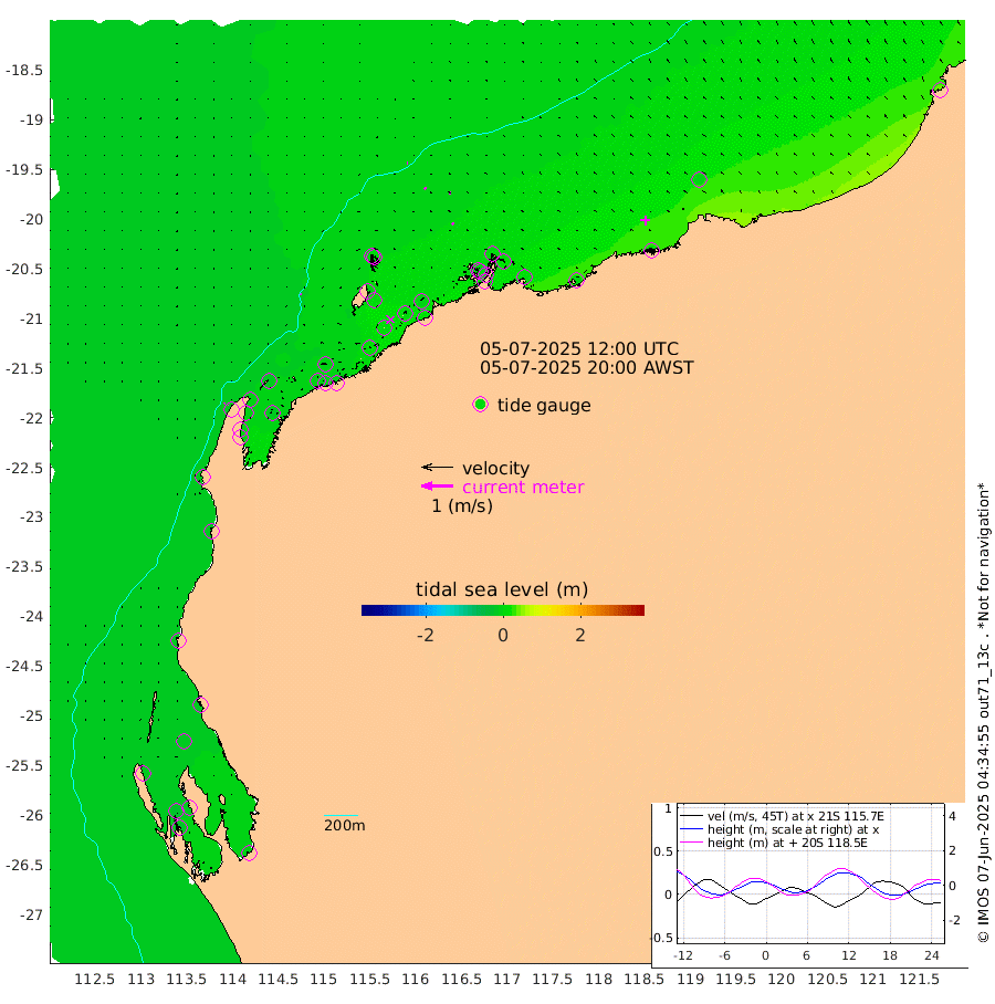 4cm/s -66T +12cm/s rms + 5cm/s -173T. NWSBAR 206m 3cm/s -156T +22cm/s rms + 10cm/s -148T. TAN100 109m 3cm/s -70T +11cm/s rms + 8cm/s -129T. PIL200 208m 5cm/s -47T +13cm/s rms + 7cm/s -137T. PIL100 105m 6cm/s -51T +12cm/s rms + 2cm/s -92T. PIL050 55m 2cm/s -135T +18cm/s rms + 4cm/s -149T. NRSNIN 61m 4cm/s -88T +6cm/s rms + 3cm/s 112T. NW Shelf M6 65m -16cm Withnell Point -22cm Denham -23cm Shark Bay (Inr Bn) -22cm Shark Bay -26cm Useless Loop -7cm Hamelin Pool -14cm Carnarvon -15cm Cape Cuvier -15cm Coral Bay -12cm Norwegian Bay -6cm Badjirrajirra -14cm Tantabiddi -10cm Point Murat -7cm Exmouth -2cm Learmonth -11cm Y Island -13cm North Muiron Island -11cm Roller -10cm Ashburton North -9cm Onslow (Beadon Creek) -9cm Thevenard Island 11cm Large Island 6cm North Sandy Island -3cm Barrow Island (Wapet Landing) 5cm Barrow Island (Tanker Mooring) 0cm Withnell Bay 0cm Trimouille Island -6cm North West Island 19cm Fortescue Road -5cm Steamboat Island 10cm Sholl Island 0cm Fairway Beacon -2cm Mawby Island 1cm Dampier (King Bay) 1cm Cape Legendre 12cm Hauy Island 7cm Port Walcott (Cape Lambert) 8cm Depuch Island 13cm Port Hedland 0cm Bedout Island 41cm Lagrange Bay