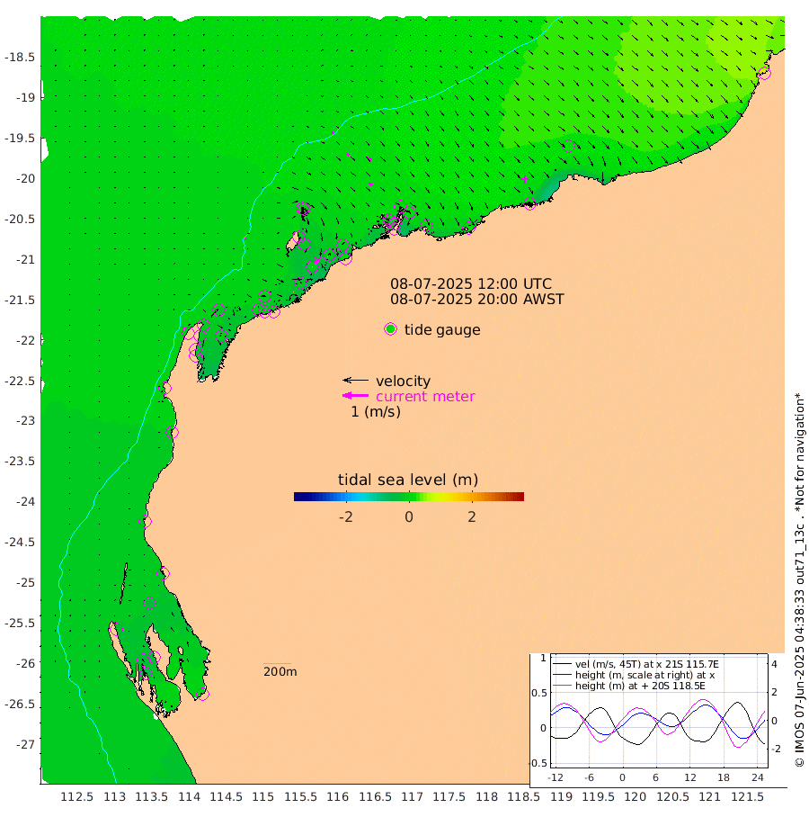 5cm/s 27T +12cm/s rms + 5cm/s -173T. NWSBAR 206m 3cm/s 57T +22cm/s rms + 10cm/s -148T. TAN100 109m 8cm/s 107T +11cm/s rms + 8cm/s -129T. PIL200 208m 14cm/s 128T +13cm/s rms + 7cm/s -137T. PIL100 105m 16cm/s 133T +12cm/s rms + 2cm/s -92T. PIL050 55m 3cm/s 50T +18cm/s rms + 4cm/s -149T. NRSNIN 61m 21cm/s 123T +6cm/s rms + 3cm/s 112T. NW Shelf M6 65m -30cm Withnell Point -45cm Denham -45cm Shark Bay (Inr Bn) -45cm Shark Bay -47cm Useless Loop -5cm Hamelin Pool -24cm Carnarvon -14cm Cape Cuvier -14cm Coral Bay -10cm Norwegian Bay -18cm Badjirrajirra -12cm Tantabiddi -17cm Point Murat -17cm Exmouth -14cm Learmonth -11cm Y Island -12cm North Muiron Island -6cm Roller -9cm Ashburton North -10cm Onslow (Beadon Creek) -9cm Thevenard Island -16cm Large Island -10cm North Sandy Island -8cm Barrow Island (Wapet Landing) -16cm Barrow Island (Tanker Mooring) 6cm Withnell Bay -14cm Trimouille Island -7cm North West Island 5cm Fortescue Road -2cm Steamboat Island -2cm Sholl Island 5cm Fairway Beacon 8cm Mawby Island 5cm Dampier (King Bay) 7cm Cape Legendre 9cm Hauy Island 9cm Port Walcott (Cape Lambert) 13cm Depuch Island 19cm Port Hedland 20cm Bedout Island 126cm Lagrange Bay