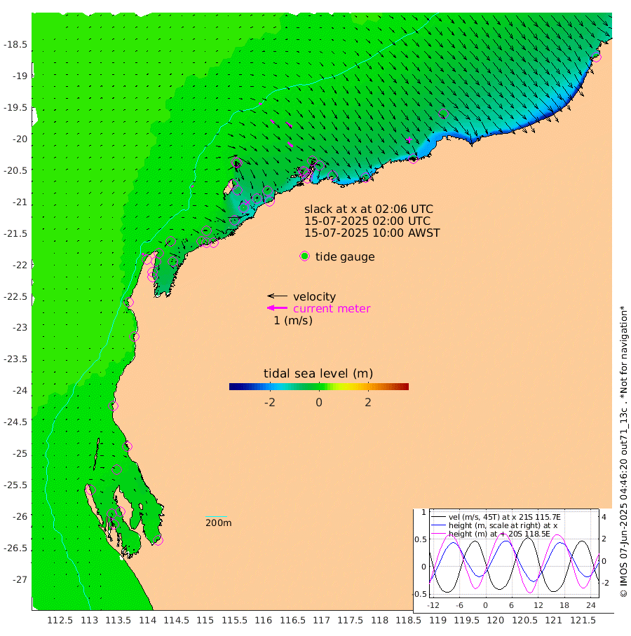 10cm/s 78T +12cm/s rms + 5cm/s -173T. NWSBAR 206m 10cm/s 40T +22cm/s rms + 10cm/s -148T. TAN100 109m 16cm/s 112T +11cm/s rms + 8cm/s -129T. PIL200 208m 26cm/s 131T +13cm/s rms + 7cm/s -137T. PIL100 105m 33cm/s 134T +12cm/s rms + 2cm/s -92T. PIL050 55m 9cm/s 47T +18cm/s rms + 4cm/s -149T. NRSNIN 61m 37cm/s 128T +6cm/s rms + 3cm/s 112T. NW Shelf M6 65m 4cm Withnell Point -4cm Denham -5cm Shark Bay (Inr Bn) 2cm Shark Bay 1cm Useless Loop 4cm Hamelin Pool 6cm Carnarvon 21cm Cape Cuvier 22cm Coral Bay 16cm Norwegian Bay -21cm Badjirrajirra 17cm Tantabiddi -3cm Point Murat -15cm Exmouth -27cm Learmonth -4cm Y Island 8cm North Muiron Island 5cm Roller 4cm Ashburton North -2cm Onslow (Beadon Creek) 3cm Thevenard Island -62cm Large Island -56cm North Sandy Island -18cm Barrow Island (Wapet Landing) -55cm Barrow Island (Tanker Mooring) -24cm Withnell Bay -29cm Trimouille Island -1cm North West Island -66cm Fortescue Road -24cm Steamboat Island -59cm Sholl Island -24cm Fairway Beacon -20cm Mawby Island -24cm Dampier (King Bay) -19cm Cape Legendre -47cm Hauy Island -46cm Port Walcott (Cape Lambert) -66cm Depuch Island -61cm Port Hedland -27cm Bedout Island -19cm Lagrange Bay