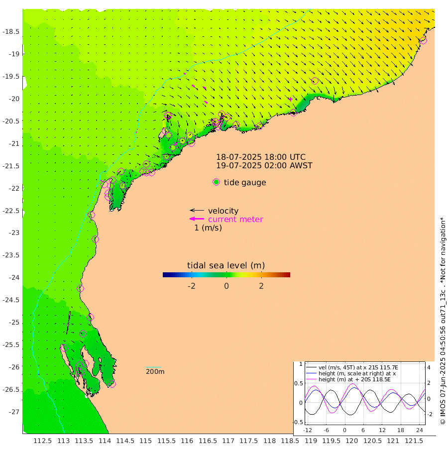 6cm/s 71T +12cm/s rms + 5cm/s -173T. NWSBAR 206m 9cm/s 39T +22cm/s rms + 10cm/s -148T. TAN100 109m 13cm/s 106T +11cm/s rms + 8cm/s -129T. PIL200 208m 22cm/s 122T +13cm/s rms + 7cm/s -137T. PIL100 105m 26cm/s 124T +12cm/s rms + 2cm/s -92T. PIL050 55m 9cm/s 47T +18cm/s rms + 4cm/s -149T. NRSNIN 61m 22cm/s 119T +6cm/s rms + 3cm/s 112T. NW Shelf M6 65m 18cm Withnell Point 2cm Denham 4cm Shark Bay (Inr Bn) 1cm Shark Bay -3cm Useless Loop -10cm Hamelin Pool 34cm Carnarvon 40cm Cape Cuvier 42cm Coral Bay 42cm Norwegian Bay 44cm Badjirrajirra 44cm Tantabiddi 41cm Point Murat 41cm Exmouth 47cm Learmonth 47cm Y Island 46cm North Muiron Island 48cm Roller 52cm Ashburton North 52cm Onslow (Beadon Creek) 53cm Thevenard Island 45cm Large Island 52cm North Sandy Island 57cm Barrow Island (Wapet Landing) 47cm Barrow Island (Tanker Mooring) 80cm Withnell Bay 60cm Trimouille Island 54cm North West Island 40cm Fortescue Road 79cm Steamboat Island 63cm Sholl Island 77cm Fairway Beacon 81cm Mawby Island 80cm Dampier (King Bay) 84cm Cape Legendre 69cm Hauy Island 87cm Port Walcott (Cape Lambert) 88cm Depuch Island 104cm Port Hedland 107cm Bedout Island 119cm Lagrange Bay