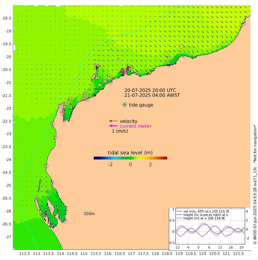 4cm/s 77T +12cm/s rms + 5cm/s -173T. NWSBAR 206m 7cm/s 39T +22cm/s rms + 10cm/s -148T. TAN100 109m 9cm/s 101T +11cm/s rms + 8cm/s -129T. PIL200 208m 15cm/s 120T +13cm/s rms + 7cm/s -137T. PIL100 105m 18cm/s 122T +12cm/s rms + 2cm/s -92T. PIL050 55m 7cm/s 46T +18cm/s rms + 4cm/s -149T. NRSNIN 61m 14cm/s 116T +6cm/s rms + 3cm/s 112T. NW Shelf M6 65m 32cm Withnell Point 21cm Denham 20cm Shark Bay (Inr Bn) 21cm Shark Bay 15cm Useless Loop -11cm Hamelin Pool 46cm Carnarvon 47cm Cape Cuvier 49cm Coral Bay 49cm Norwegian Bay 50cm Badjirrajirra 48cm Tantabiddi 47cm Point Murat 47cm Exmouth 48cm Learmonth 51cm Y Island 50cm North Muiron Island 50cm Roller 53cm Ashburton North 52cm Onslow (Beadon Creek) 53cm Thevenard Island 24cm Large Island 49cm North Sandy Island 54cm Barrow Island (Wapet Landing) 45cm Barrow Island (Tanker Mooring) 65cm Withnell Bay 52cm Trimouille Island 52cm North West Island 14cm Fortescue Road 66cm Steamboat Island 57cm Sholl Island 62cm Fairway Beacon 66cm Mawby Island 64cm Dampier (King Bay) 70cm Cape Legendre 53cm Hauy Island 66cm Port Walcott (Cape Lambert) 57cm Depuch Island 72cm Port Hedland 68cm Bedout Island 19cm Lagrange Bay