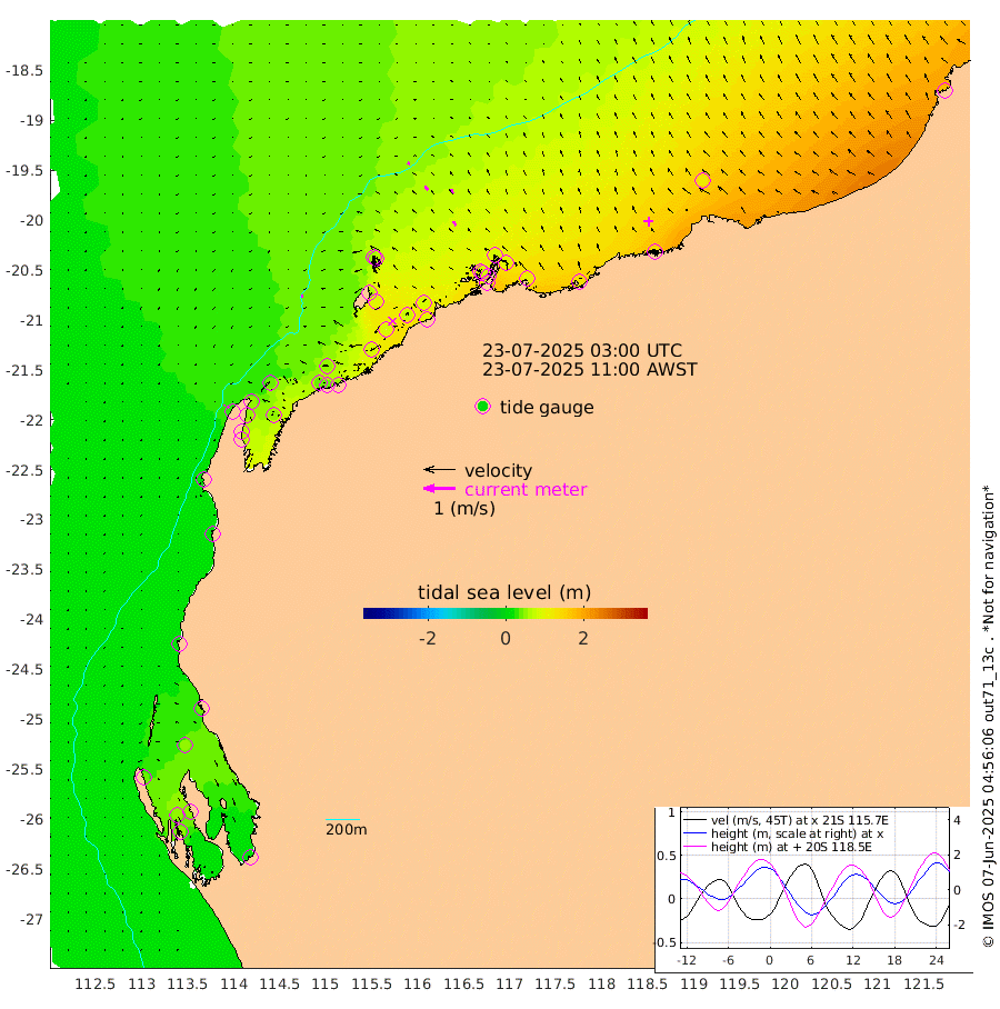 5cm/s -103T +12cm/s rms + 5cm/s -173T. NWSBAR 206m 5cm/s -132T +22cm/s rms + 10cm/s -148T. TAN100 109m 8cm/s -73T +11cm/s rms + 8cm/s -129T. PIL200 208m 14cm/s -44T +13cm/s rms + 7cm/s -137T. PIL100 105m 15cm/s -35T +12cm/s rms + 2cm/s -92T. PIL050 55m 5cm/s -128T +18cm/s rms + 4cm/s -149T. NRSNIN 61m 16cm/s -28T +6cm/s rms + 3cm/s 112T. NW Shelf M6 65m 39cm Withnell Point 54cm Denham 52cm Shark Bay (Inr Bn) 54cm Shark Bay 54cm Useless Loop 5cm Hamelin Pool 37cm Carnarvon 18cm Cape Cuvier 20cm Coral Bay 19cm Norwegian Bay 63cm Badjirrajirra 25cm Tantabiddi 46cm Point Murat 56cm Exmouth 61cm Learmonth 49cm Y Island 35cm North Muiron Island 40cm Roller 43cm Ashburton North 51cm Onslow (Beadon Creek) 46cm Thevenard Island 82cm Large Island 90cm North Sandy Island 67cm Barrow Island (Wapet Landing) 98cm Barrow Island (Tanker Mooring) 86cm Withnell Bay 59cm Trimouille Island 56cm North West Island 96cm Fortescue Road 88cm Steamboat Island 72cm Sholl Island 86cm Fairway Beacon 85cm Mawby Island 86cm Dampier (King Bay) 88cm Cape Legendre 99cm Hauy Island 110cm Port Walcott (Cape Lambert) 128cm Depuch Island 132cm Port Hedland 123cm Bedout Island 172cm Lagrange Bay