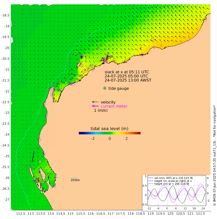 8cm/s -115T +12cm/s rms + 5cm/s -173T. NWSBAR 206m 10cm/s -135T +22cm/s rms + 10cm/s -148T. TAN100 109m 14cm/s -72T +11cm/s rms + 8cm/s -129T. PIL200 208m 25cm/s -51T +13cm/s rms + 7cm/s -137T. PIL100 105m 29cm/s -46T +12cm/s rms + 2cm/s -92T. PIL050 55m 11cm/s -131T +18cm/s rms + 4cm/s -149T. NRSNIN 61m 33cm/s -45T +6cm/s rms + 3cm/s 112T. NW Shelf M6 65m 21cm Withnell Point 45cm Denham 45cm Shark Bay (Inr Bn) 43cm Shark Bay 48cm Useless Loop 11cm Hamelin Pool 10cm Carnarvon -8cm Cape Cuvier -8cm Coral Bay -9cm Norwegian Bay 34cm Badjirrajirra -3cm Tantabiddi 17cm Point Murat 28cm Exmouth 34cm Learmonth 18cm Y Island 6cm North Muiron Island 8cm Roller 9cm Ashburton North 17cm Onslow (Beadon Creek) 11cm Thevenard Island 52cm Large Island 57cm North Sandy Island 31cm Barrow Island (Wapet Landing) 65cm Barrow Island (Tanker Mooring) 37cm Withnell Bay 26cm Trimouille Island 22cm North West Island 53cm Fortescue Road 46cm Steamboat Island 48cm Sholl Island 38cm Fairway Beacon 37cm Mawby Island 37cm Dampier (King Bay) 32cm Cape Legendre 54cm Hauy Island 58cm Port Walcott (Cape Lambert) 77cm Depuch Island 72cm Port Hedland 58cm Bedout Island 20cm Lagrange Bay
