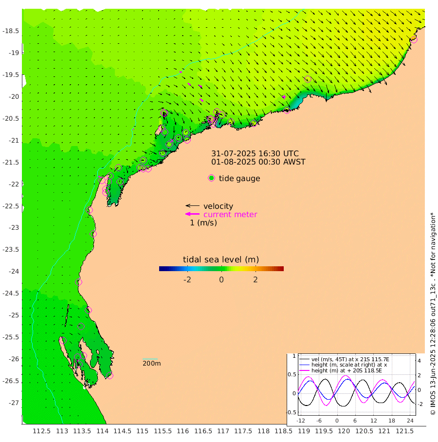 6cm/s 67T +12cm/s rms + 5cm/s -173T. NWSBAR 206m 10cm/s 39T +22cm/s rms + 10cm/s -148T. TAN100 109m 15cm/s 108T +11cm/s rms + 8cm/s -129T. PIL200 208m 25cm/s 125T +13cm/s rms + 7cm/s -137T. PIL100 105m 30cm/s 127T +12cm/s rms + 2cm/s -92T. PIL050 55m 10cm/s 47T +18cm/s rms + 4cm/s -149T. NRSNIN 61m 28cm/s 122T +6cm/s rms + 3cm/s 112T. NW Shelf M6 65m 7cm Withnell Point -11cm Denham -7cm Shark Bay (Inr Bn) -11cm Shark Bay -15cm Useless Loop -8cm Hamelin Pool 20cm Carnarvon 29cm Cape Cuvier 32cm Coral Bay 31cm Norwegian Bay 22cm Badjirrajirra 33cm Tantabiddi 25cm Point Murat 23cm Exmouth 28cm Learmonth 33cm Y Island 34cm North Muiron Island 38cm Roller 38cm Ashburton North 35cm Onslow (Beadon Creek) 38cm Thevenard Island 42cm Large Island 34cm North Sandy Island 38cm Barrow Island (Wapet Landing) 24cm Barrow Island (Tanker Mooring) 61cm Withnell Bay 41cm Trimouille Island 37cm North West Island 42cm Fortescue Road 51cm Steamboat Island 32cm Sholl Island 57cm Fairway Beacon 62cm Mawby Island 60cm Dampier (King Bay) 60cm Cape Legendre 48cm Hauy Island 63cm Port Walcott (Cape Lambert) 75cm Depuch Island 80cm Port Hedland 88cm Bedout Island 184cm Lagrange Bay